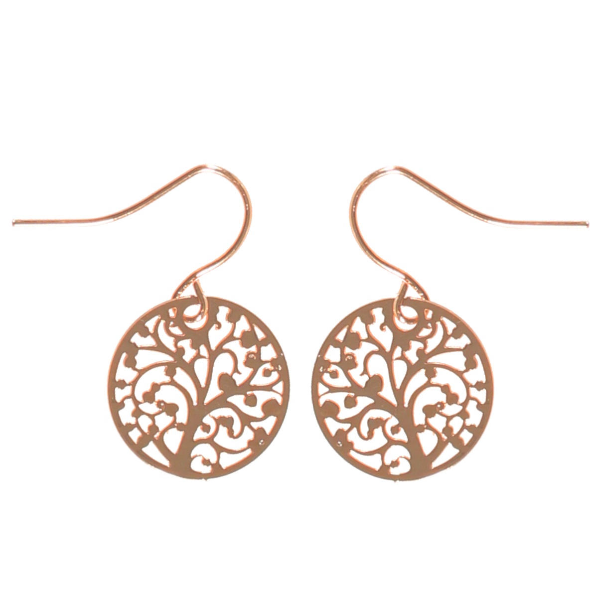 Boucles d'oreilles pendantes arbre de vie en métal rosé.