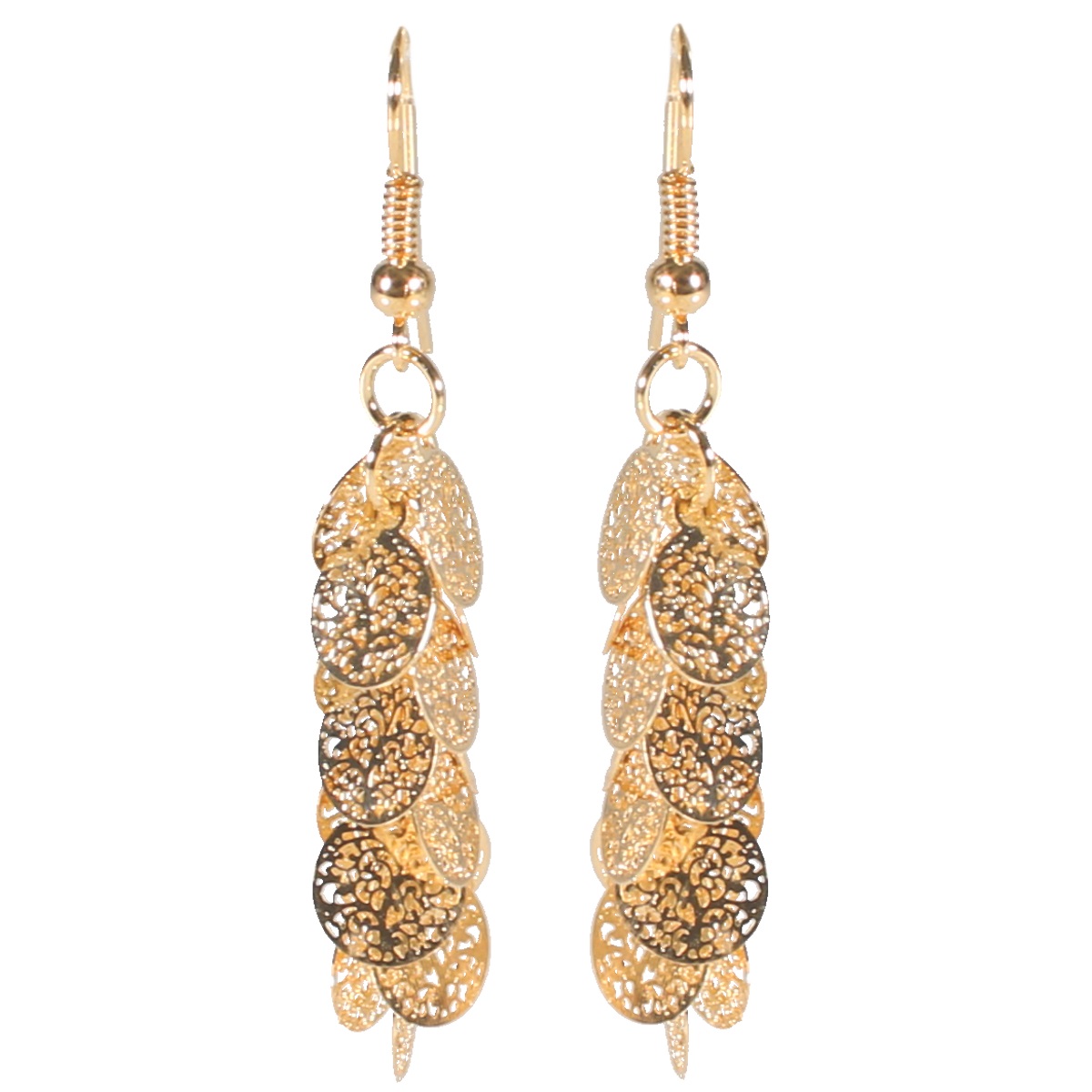 Boucles d'oreilles pendantes fantaisie arbre de vie en métal doré.