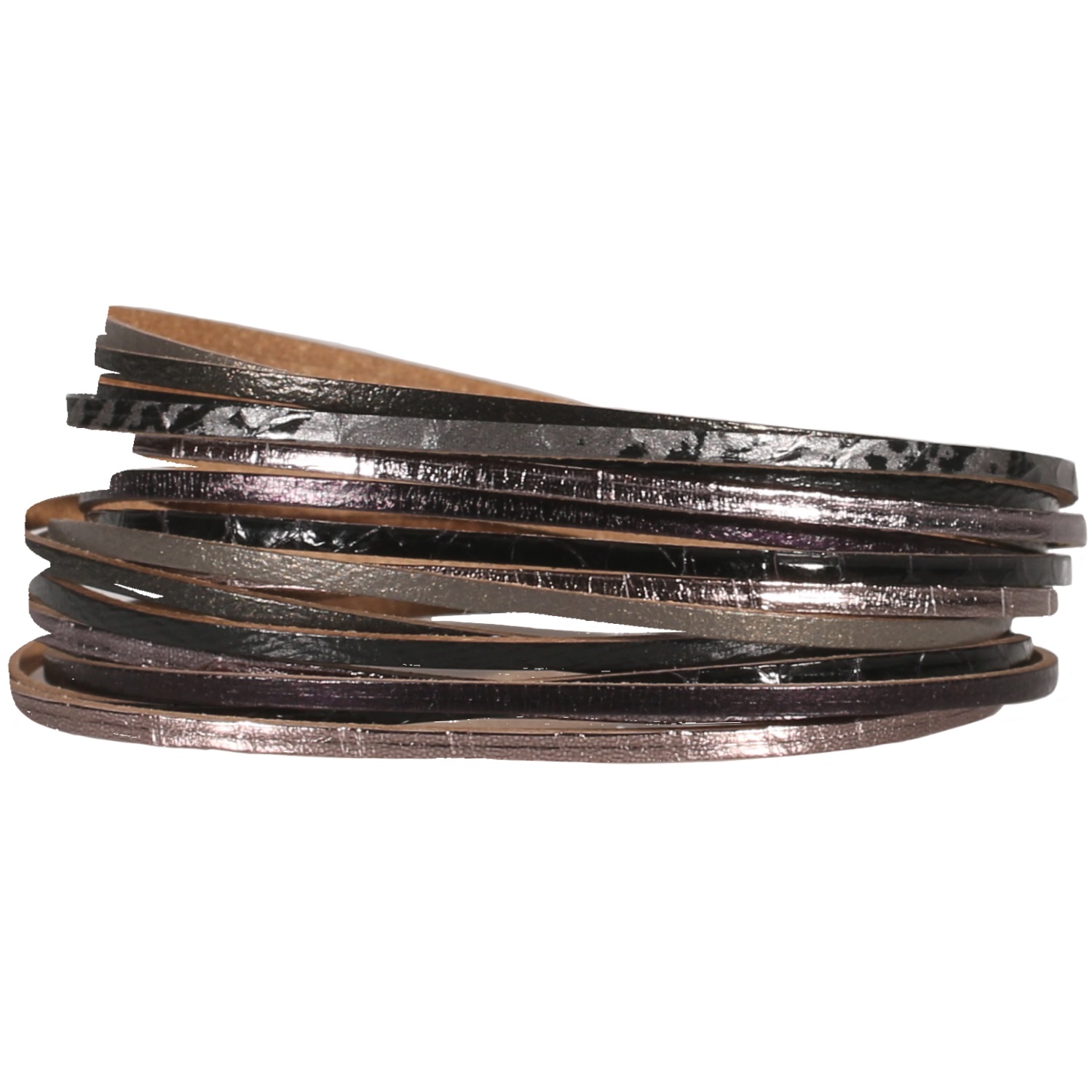 Bracelet fantaisie multi rangs et multi tours en métal argenté et cuir.
