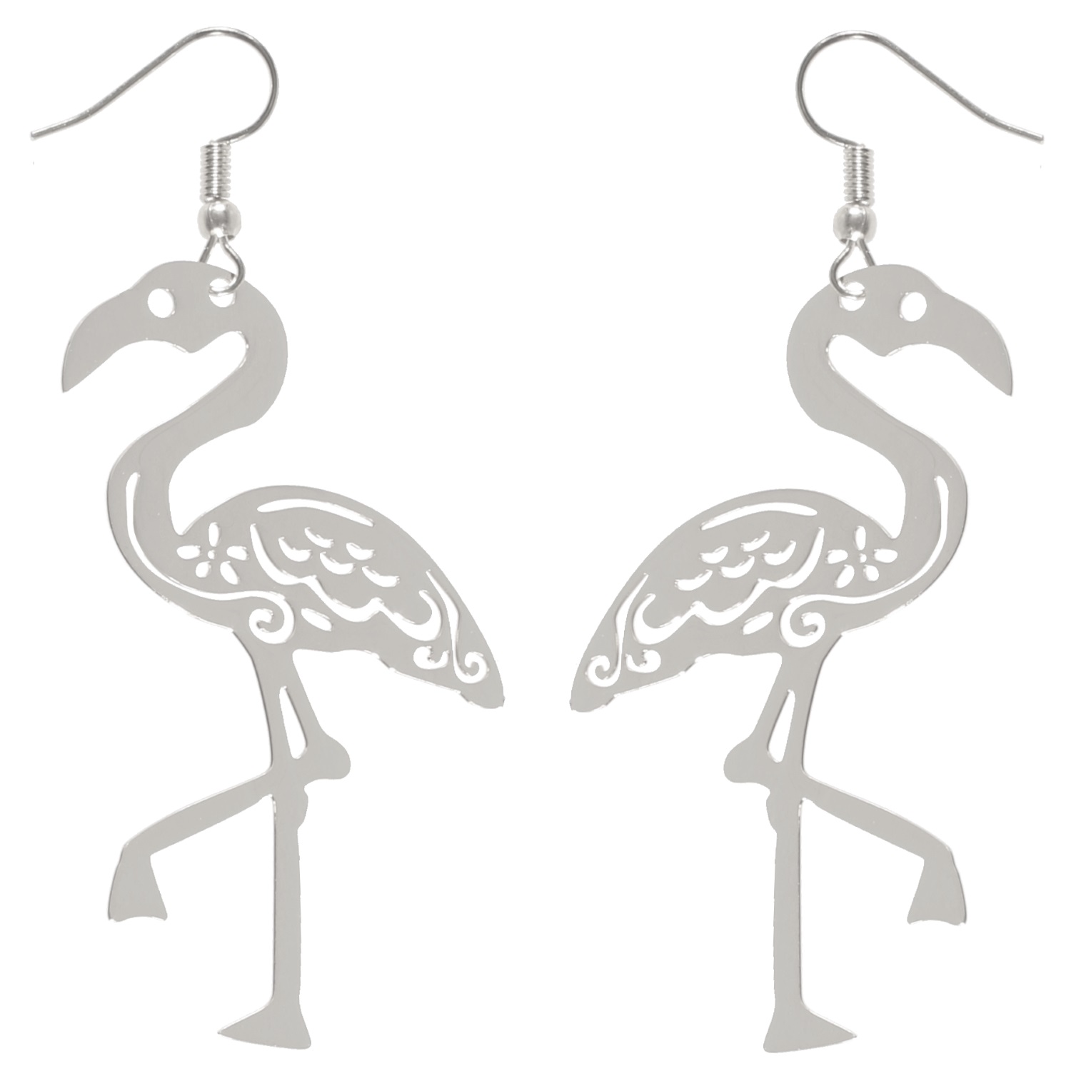Boucles d'oreilles pendantes flamants en métal argenté.