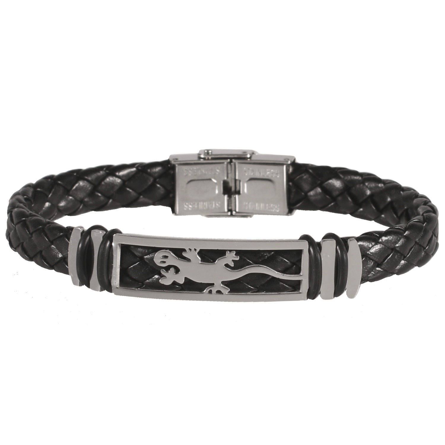 Bracelet pour homme avec salamandre en acier et polyuréthane.