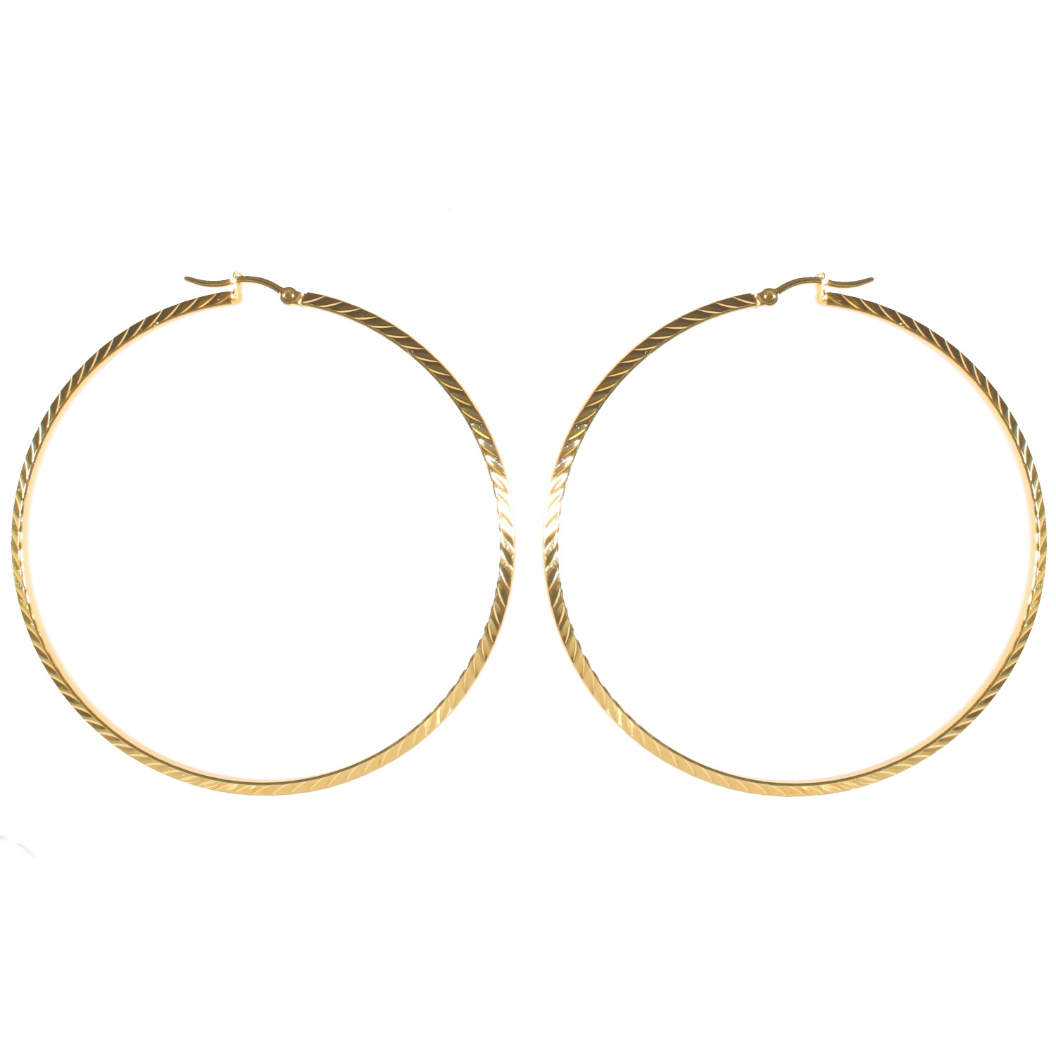 Description Boucles d'oreilles créoles en acier doré. Largeur 2 mm Diamètre 65 mm [Guide des tailles] Matière(s) Acier . L'acier utilisé dans la bijouterie existe sous plusieurs qualités. Nous utilisons principalement la qualité 316L, qualité qui est utilisée en chirurgie. Cet acier est donc inoxydable et reste très résistant. Fermoir Charnière avec cran Couleur(s) dominante(s) Doré Public Adolescent , Adulte . Genre Femme , Fille . Saison Indémodable . Cliquez sur une matière, un thème, une couleur ou une collection pour voir tous les articles associés.