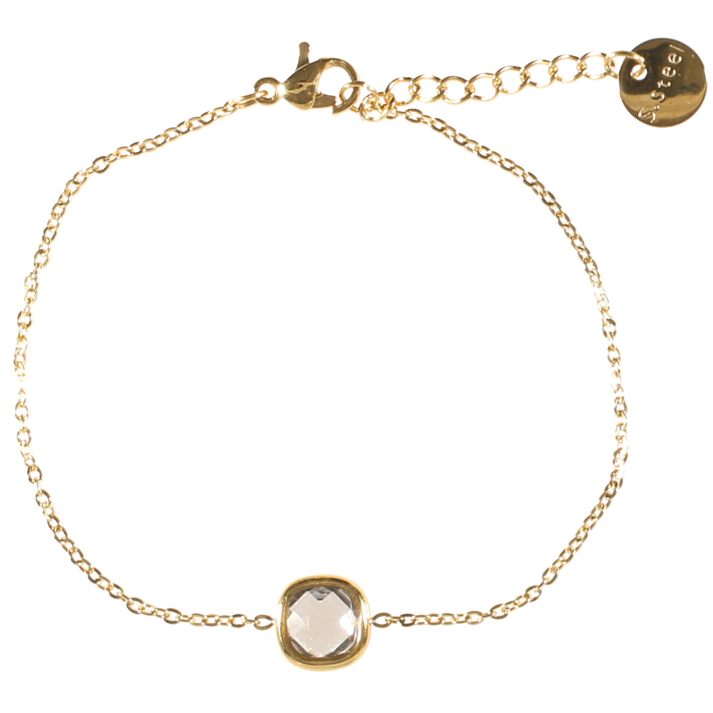 Description Bracelet en acier doré et cristal de couleur transparente. Cliquez sur une matière, un thème, une couleur ou une collection pour voir tous les articles associés.
