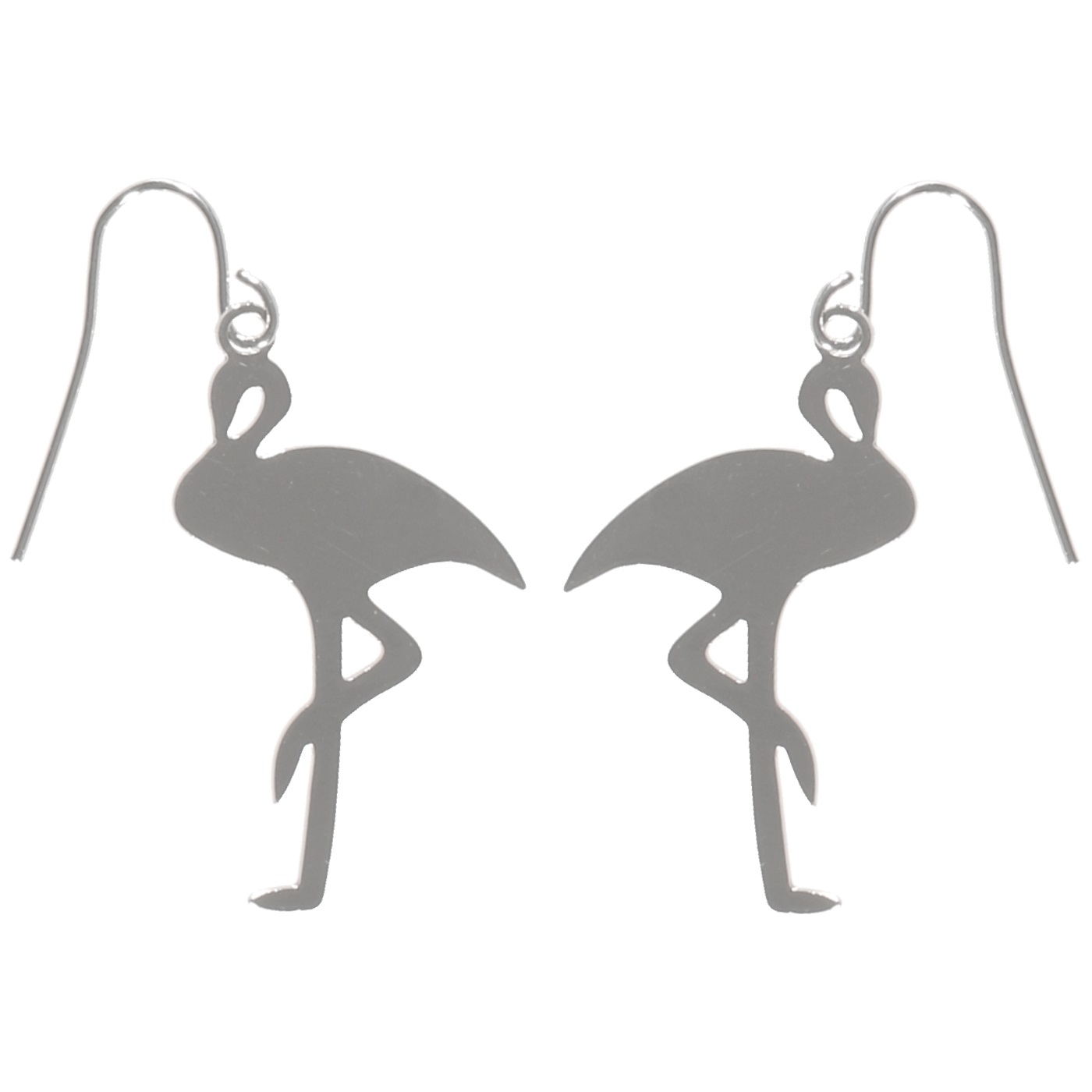 Boucles d'oreilles pendantes fantaisie flamants en métal argenté.