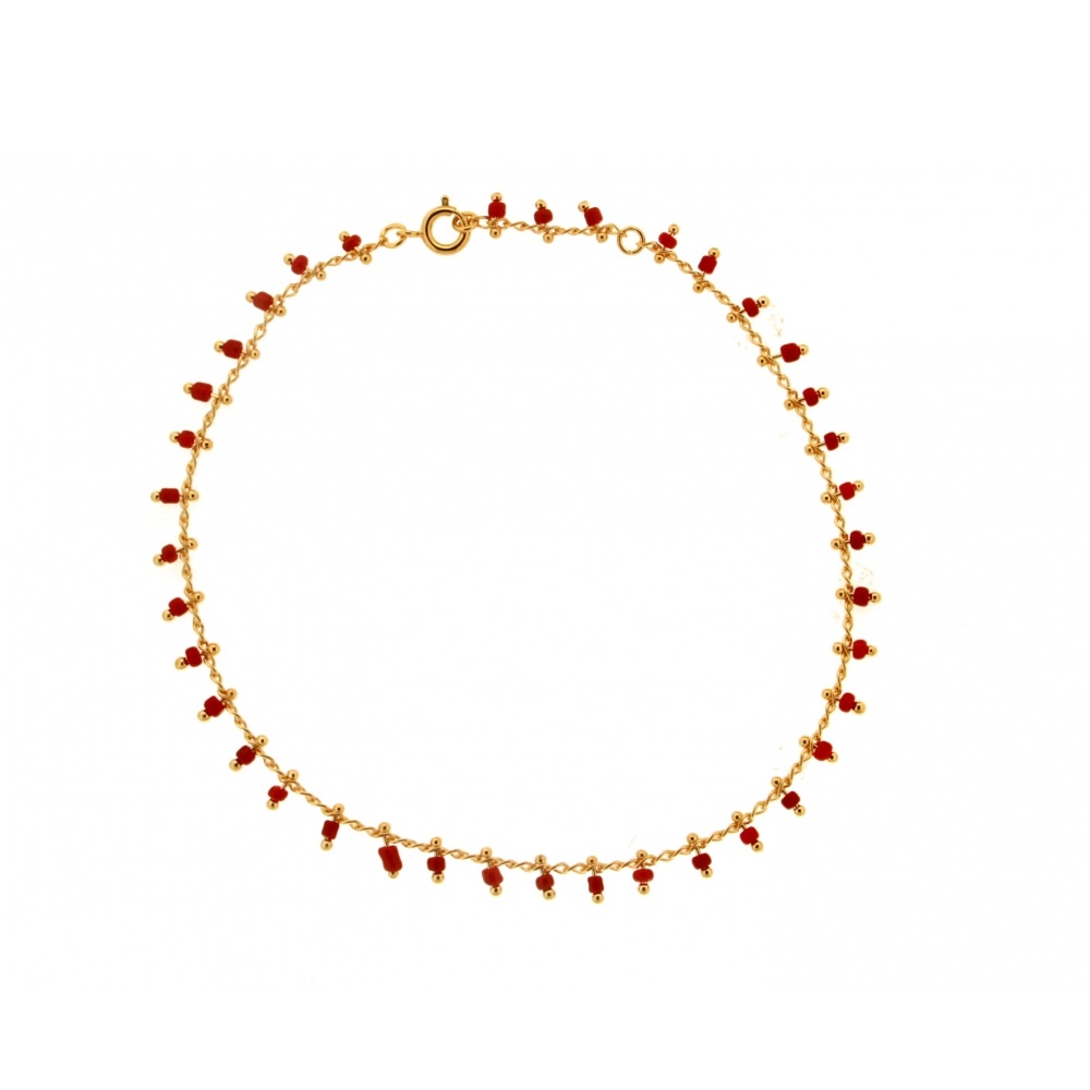 Chaîne de cheville en plaqué or et perles de couleur corail.