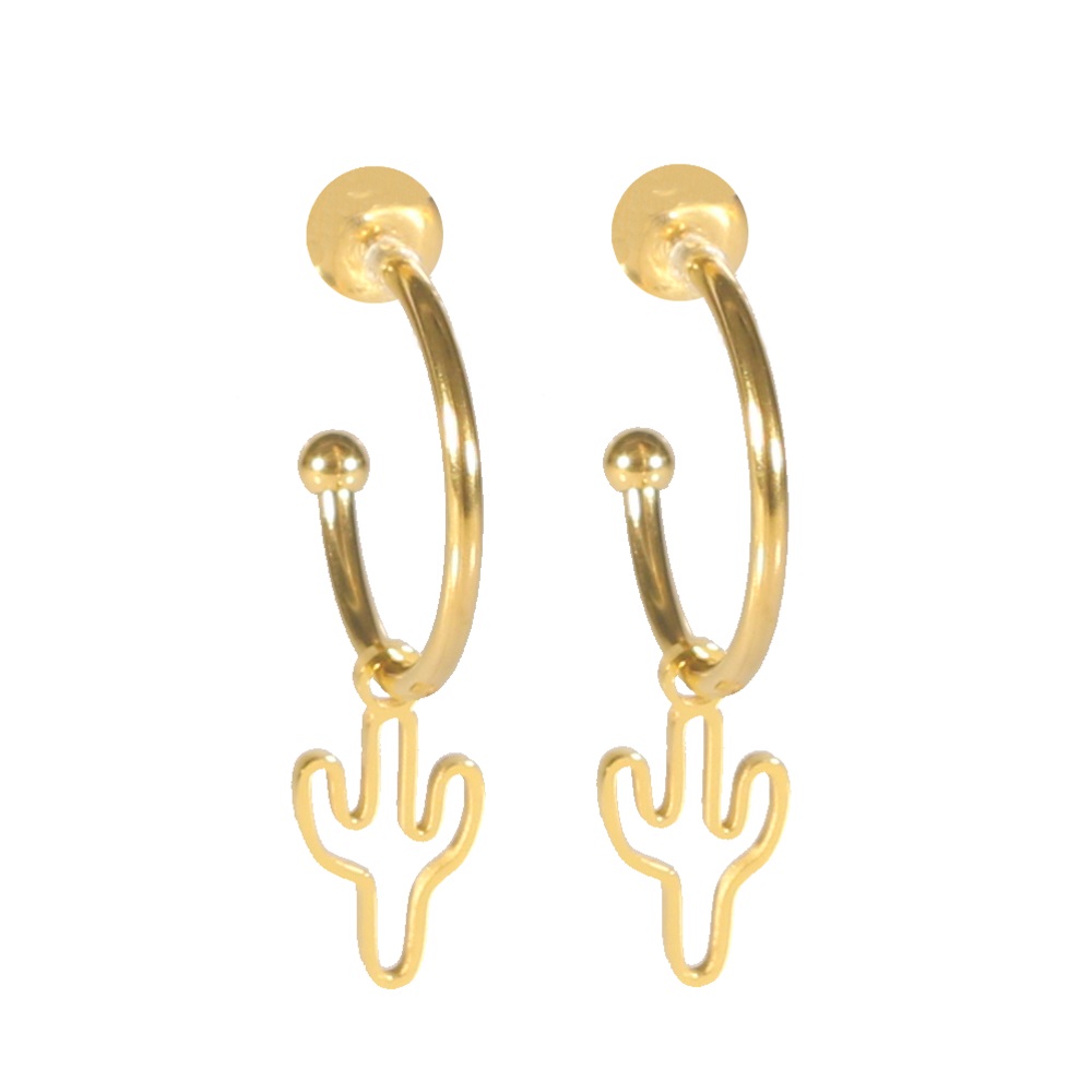 Description Boucles d'oreilles créoles avec cactus en acier doré. Largeur 8 mm Hauteur 31 mm Diamètre 15 mm Matière(s) Acier . L'acier utilisé dans la bijouterie existe sous plusieurs qualités. Nous utilisons principalement la qualité 316L, qualité qui est utilisée en chirurgie. Cet acier est donc inoxydable et reste très résistant. Fermoir Tiges poussettes Couleur(s) dominante(s) Doré Public Adolescent , Adulte . Genre Femme , Fille . Saison Indémodable . Thème(s) Nature . Cliquez sur une matière, un thème, une couleur ou une collection pour voir tous les articles associés.