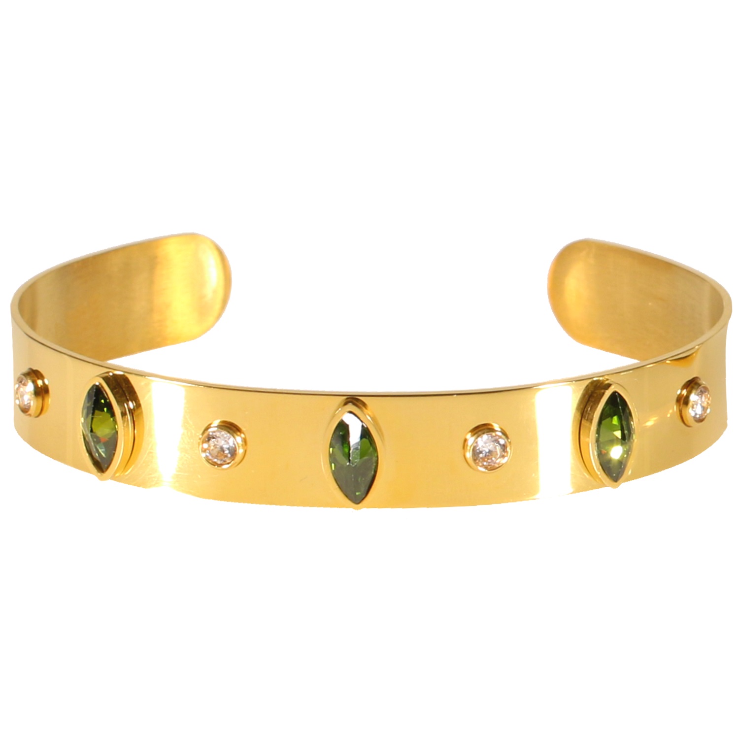Description Bracelet jonc en acier doré avec cristaux. Largeur 10 mm Diamètre 60 mm [Guide des tailles] Matière(s) Acier , Verre . L'acier utilisé dans la bijouterie existe sous plusieurs qualités. Nous utilisons principalement la qualité 316L, qualité qui est utilisée en chirurgie. Cet acier est donc inoxydable et reste très résistant. Fermoir Aucun Couleur(s) dominante(s) Doré Public Adolescent , Adulte . Genre Femme , Fille . Saison Indémodable . Cliquez sur une matière, un thème, une couleur ou une collection pour voir tous les articles associés.