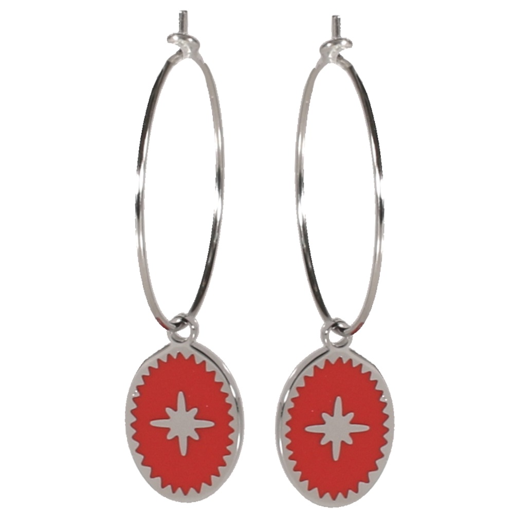 Description Boucles d'oreilles créoles avec pendant motif rose des vents en acier argenté et émail. Largeur 10 mm Hauteur 40 mm Diamètre 25 mm Matière(s) Acier , Email . L'acier utilisé dans la bijouterie existe sous plusieurs qualités. Nous utilisons principalement la qualité 316L, qualité qui est utilisée en chirurgie. Cet acier est donc inoxydable et reste très résistant. Fermoir Charnière Couleur(s) dominante(s) Argenté , Rouge Public Adolescent , Adulte . Genre Femme , Fille . Saison Indémodable . Thème(s) Symboles . Collection Astre sublime , Isabella Cliquez sur une matière, un thème, une couleur ou une collection pour voir tous les articles associés.