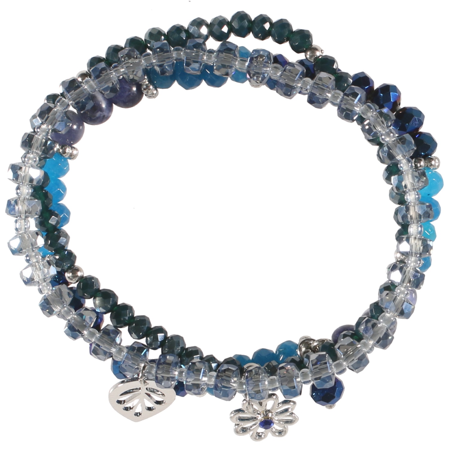 Lot de 3 bracelets fantaisie élastique avec breloques en métal argenté et perles de couleur.