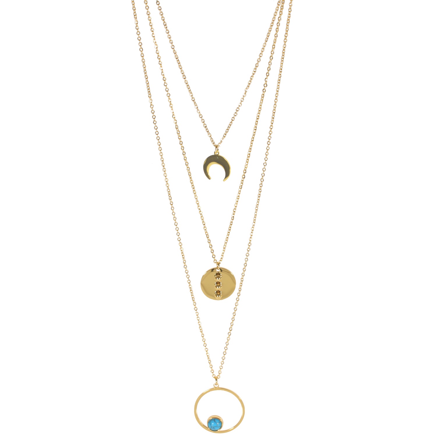 Description Collier triple rangs avec pendentifs rond et cercle en acier doré et pierre d'imitation turquoise. Longueur 36+5 cm [Guide des tailles] Hauteur 16/25 mm Matière(s) Acier , Rocaille . L'acier utilisé dans la bijouterie existe sous plusieurs qualités. Nous utilisons principalement la qualité 316L, qualité qui est utilisée en chirurgie. Cet acier est donc inoxydable et reste très résistant. Fermoir Mousqueton Couleur(s) dominante(s) Bleu , Doré Public Adolescent , Adulte . Genre Femme , Fille . Saison Indémodable . Collection Myriade Cliquez sur une matière, un thème, une couleur ou une collection pour voir tous les articles associés.