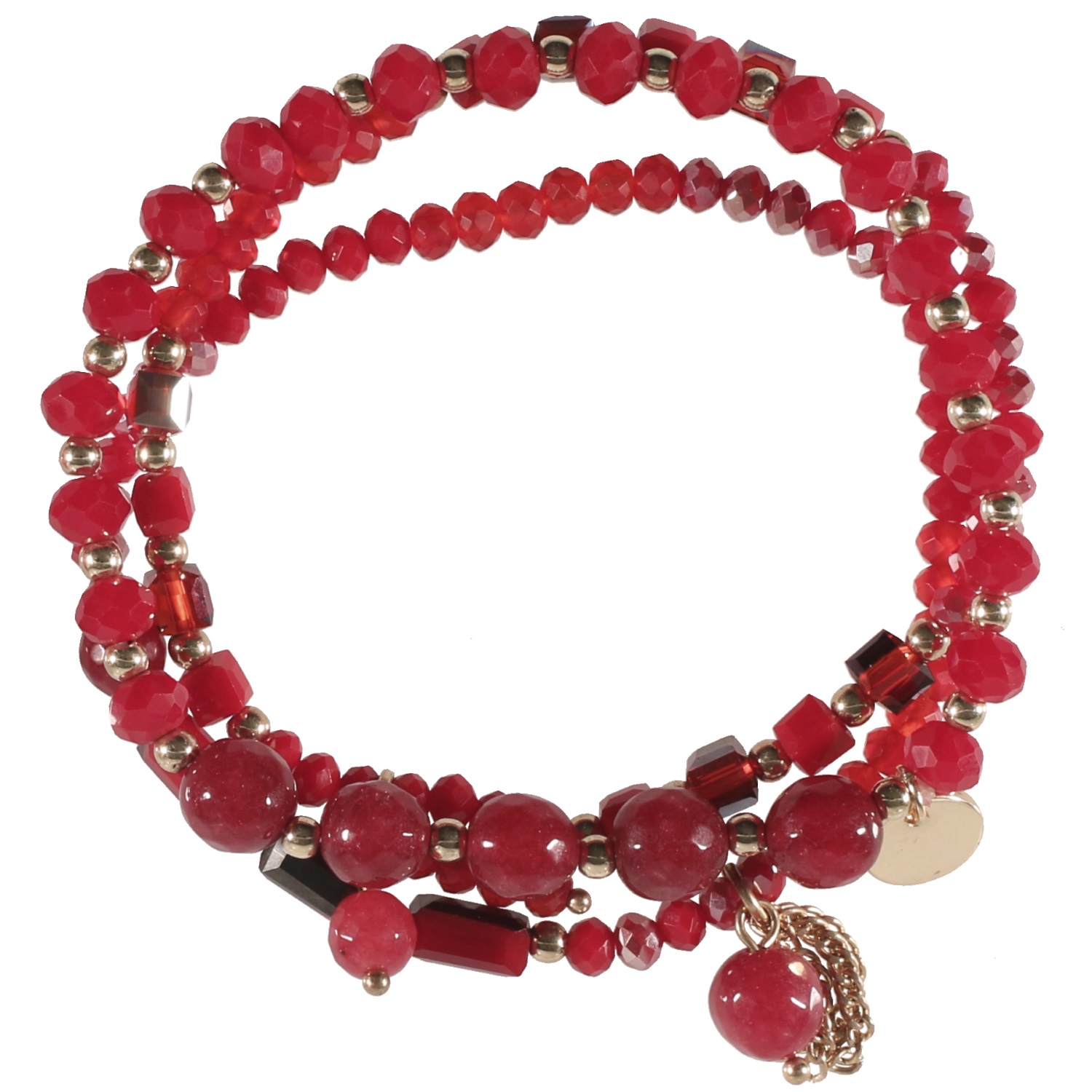 Lot de 3 bracelets fantaisie élastiques avec perles en métal doré, pierres et cristaux de couleur.