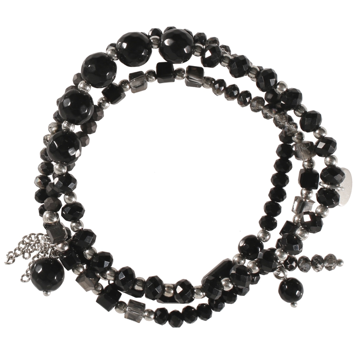 Lot de 3 bracelets fantaisie élastiques avec perles en métal argenté, pierres et cristaux de couleur.
