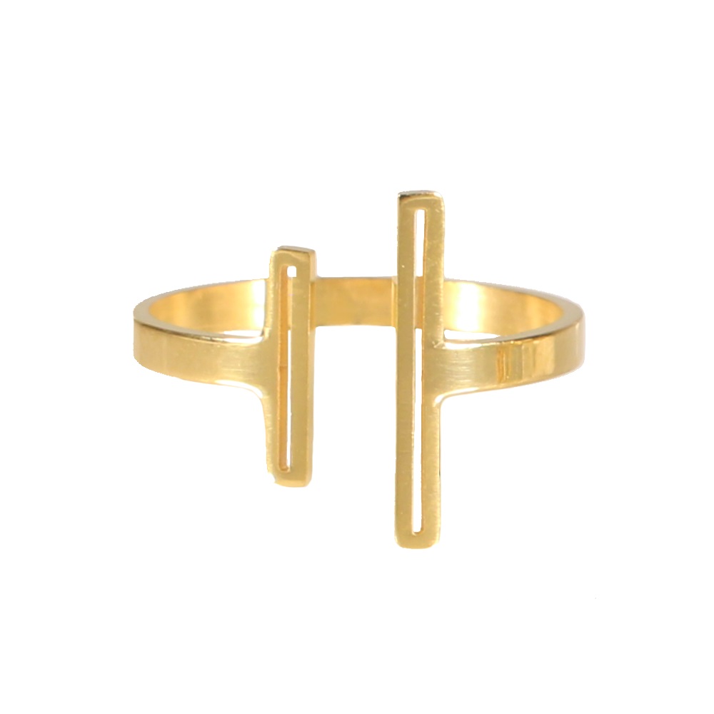 Description Bague ouverte avec deux barres en acier 316L doré. Largeur 15 mm Matière(s) Acier . L'acier utilisé dans la bijouterie existe sous plusieurs qualités. Nous utilisons principalement la qualité 316L, qualité qui est utilisée en chirurgie. Cet acier est donc inoxydable et reste très résistant. À noter Taille ajustable Couleur(s) dominante(s) Doré Public Adolescent , Adulte . Genre Femme , Fille . Saison Indémodable . Cliquez sur une matière, un thème, une couleur ou une collection pour voir tous les articles associés.