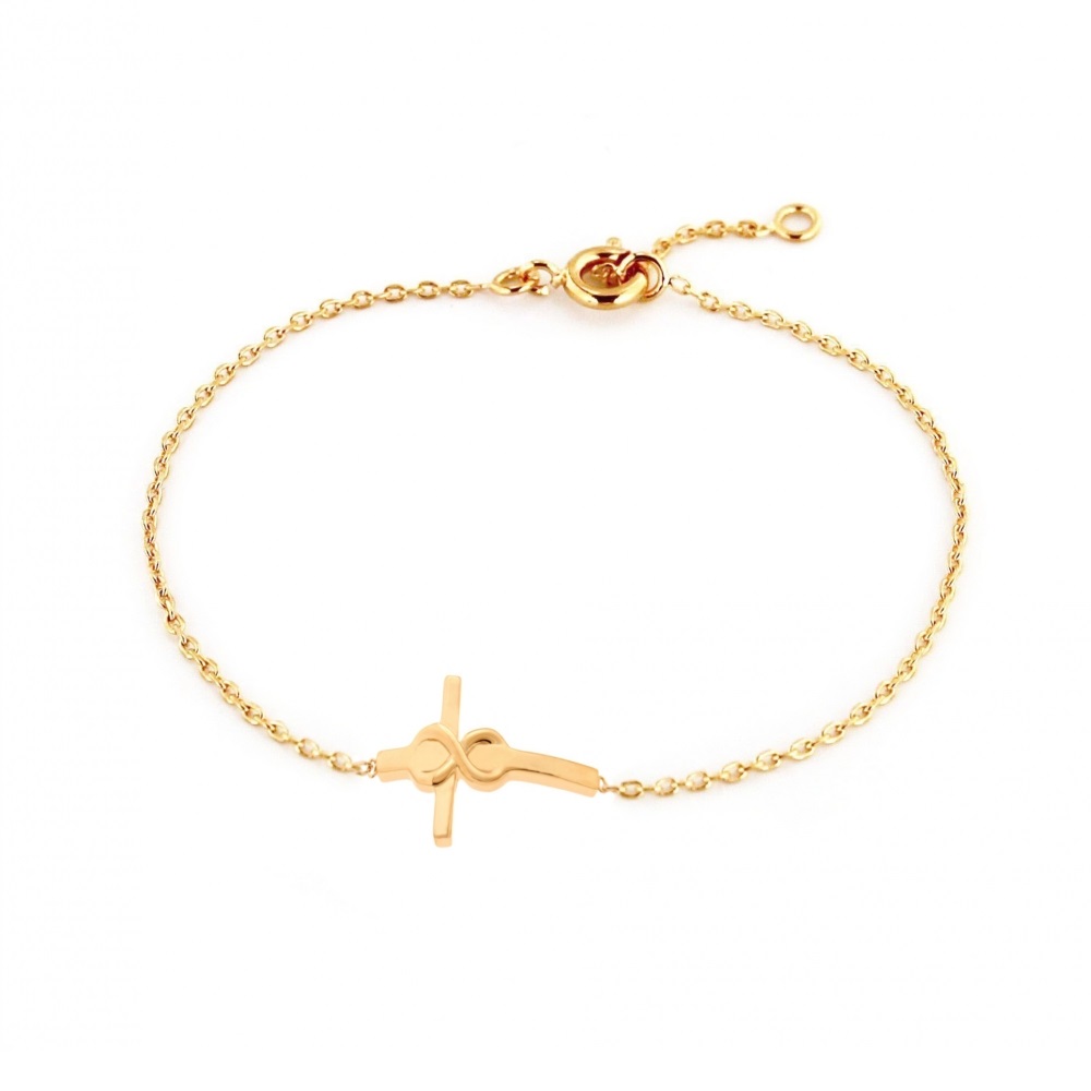 Bracelet avec croix et infini au centre en plaqué or.