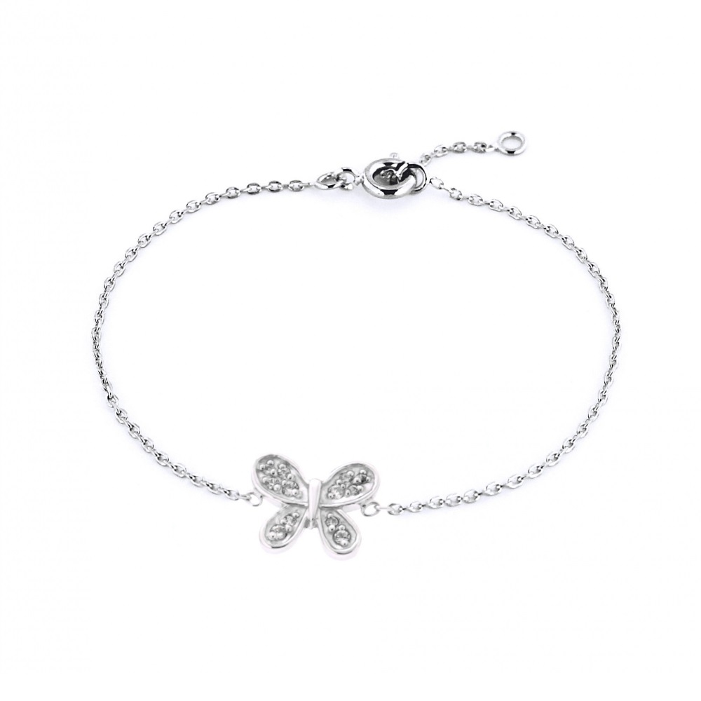 Bracelet avec papillon en argent 925/000 rhodié et oxydes de zirconium.