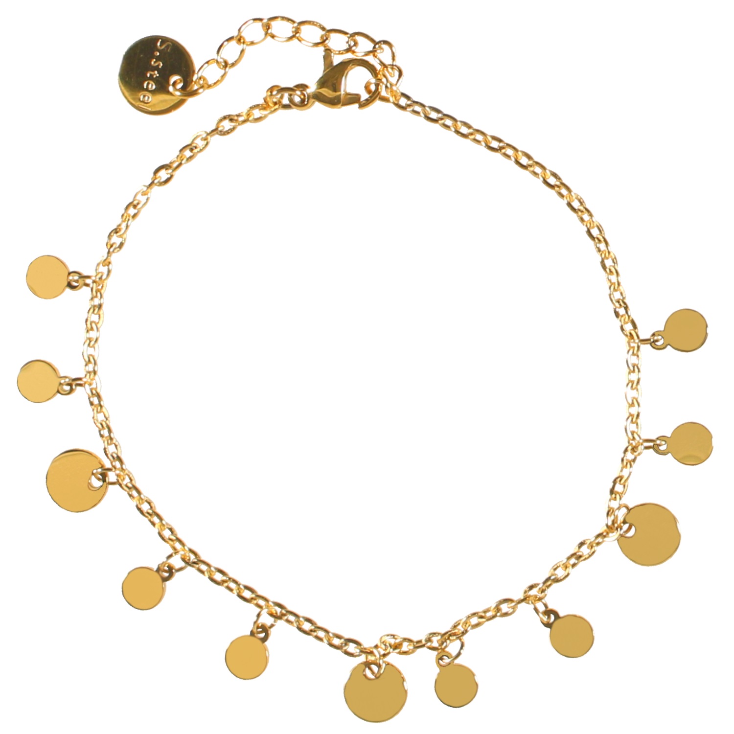 Description Bracelet avec pampilles rondes en acier doré. Longueur 16+3 cm [Guide des tailles] Largeur 7 mm Matière(s) Acier . L'acier utilisé dans la bijouterie existe sous plusieurs qualités. Nous utilisons principalement la qualité 316L, qualité qui est utilisée en chirurgie. Cet acier est donc inoxydable et reste très résistant. Fermoir Mousqueton Couleur(s) dominante(s) Doré Public Adolescent , Adulte . Genre Femme , Fille . Saison Indémodable . Cliquez sur une matière, un thème, une couleur ou une collection pour voir tous les articles associés.