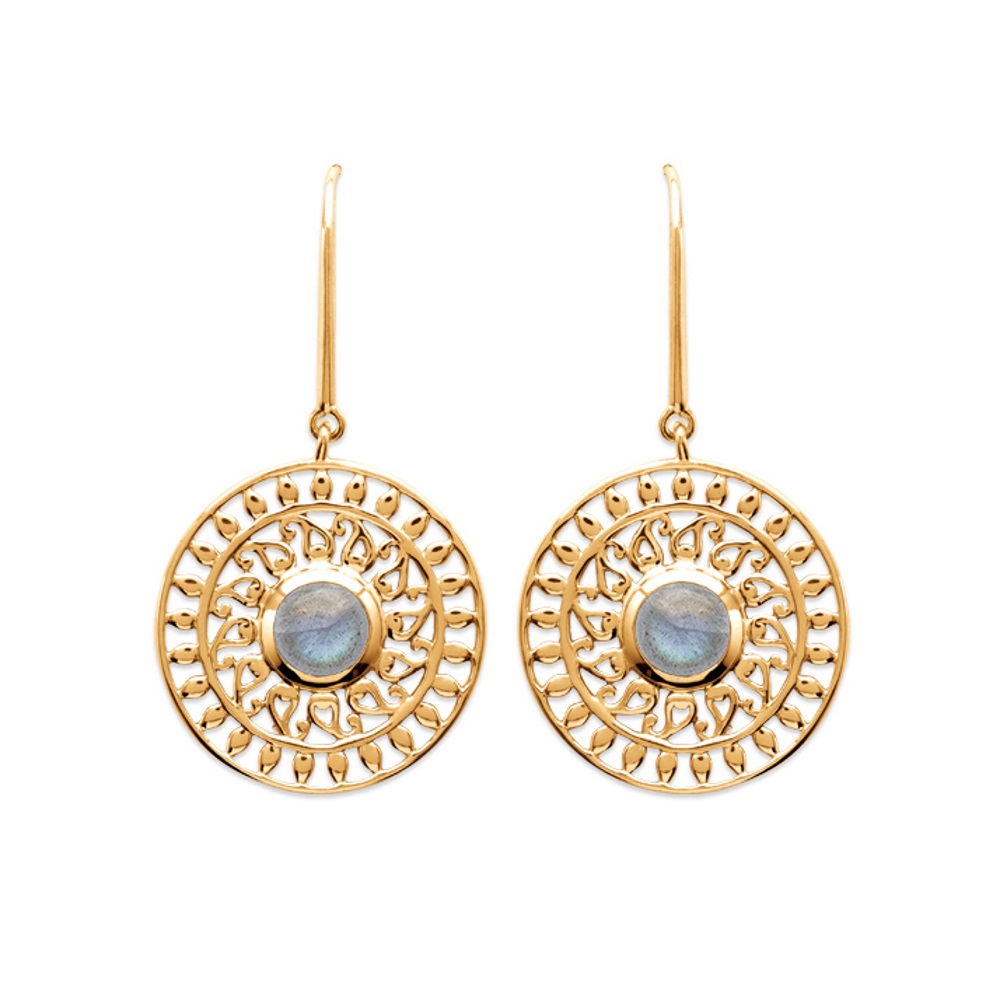 Boucles d'oreilles pendantes en plaqué or et labradorite.