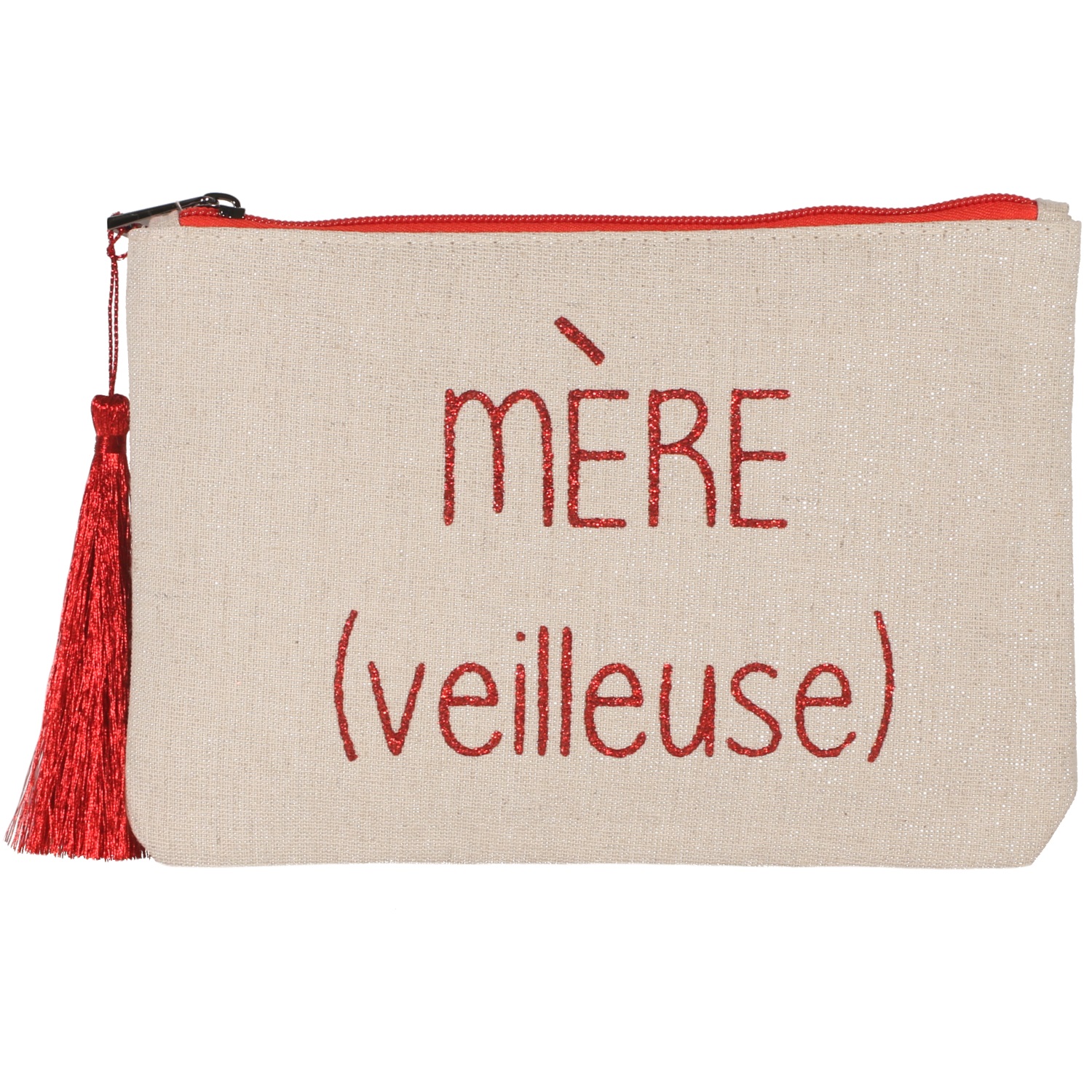 Sac pochette en polyuréthane avec pompon et l'inscription pailletée mère (veilleuse).