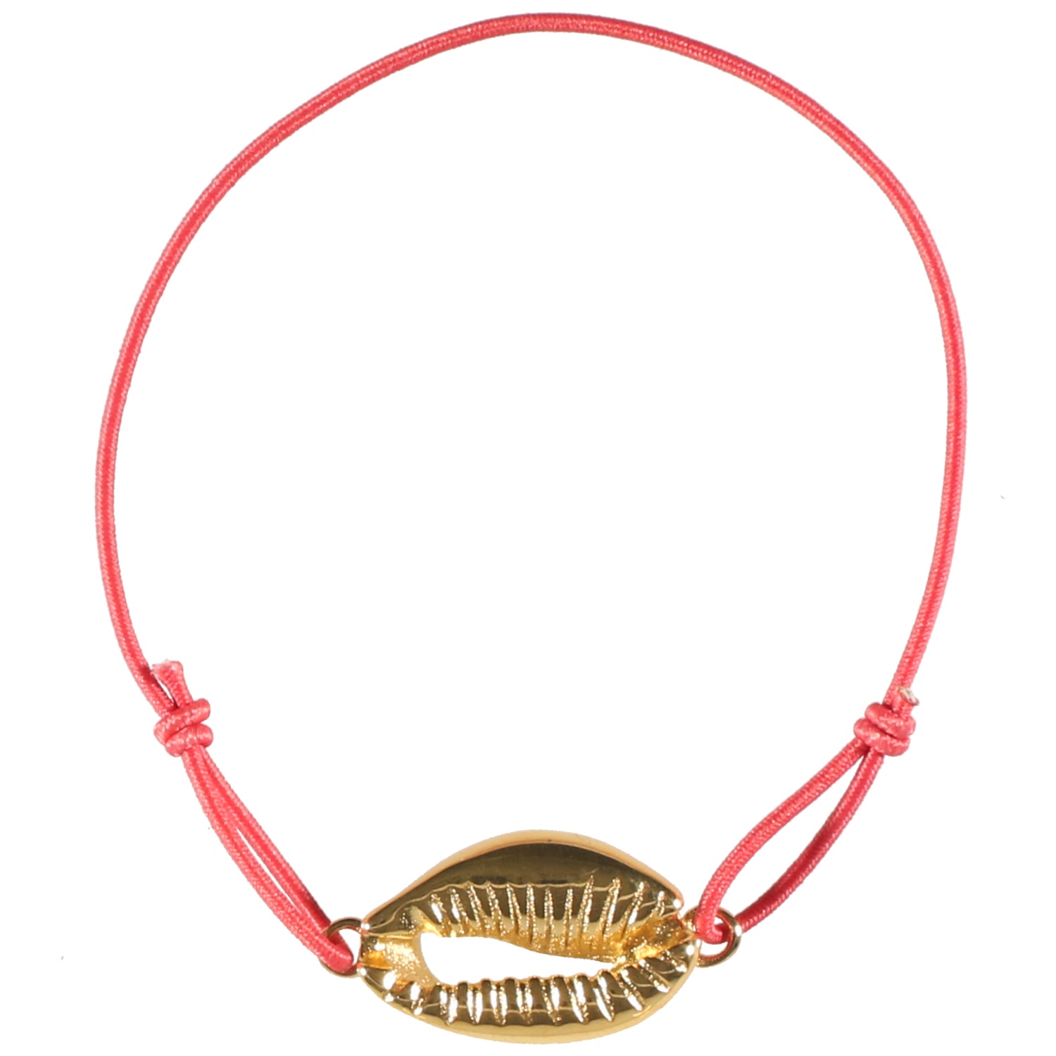 Bracelet avec cordon élastique en coton et coquillage cauris en acier doré.