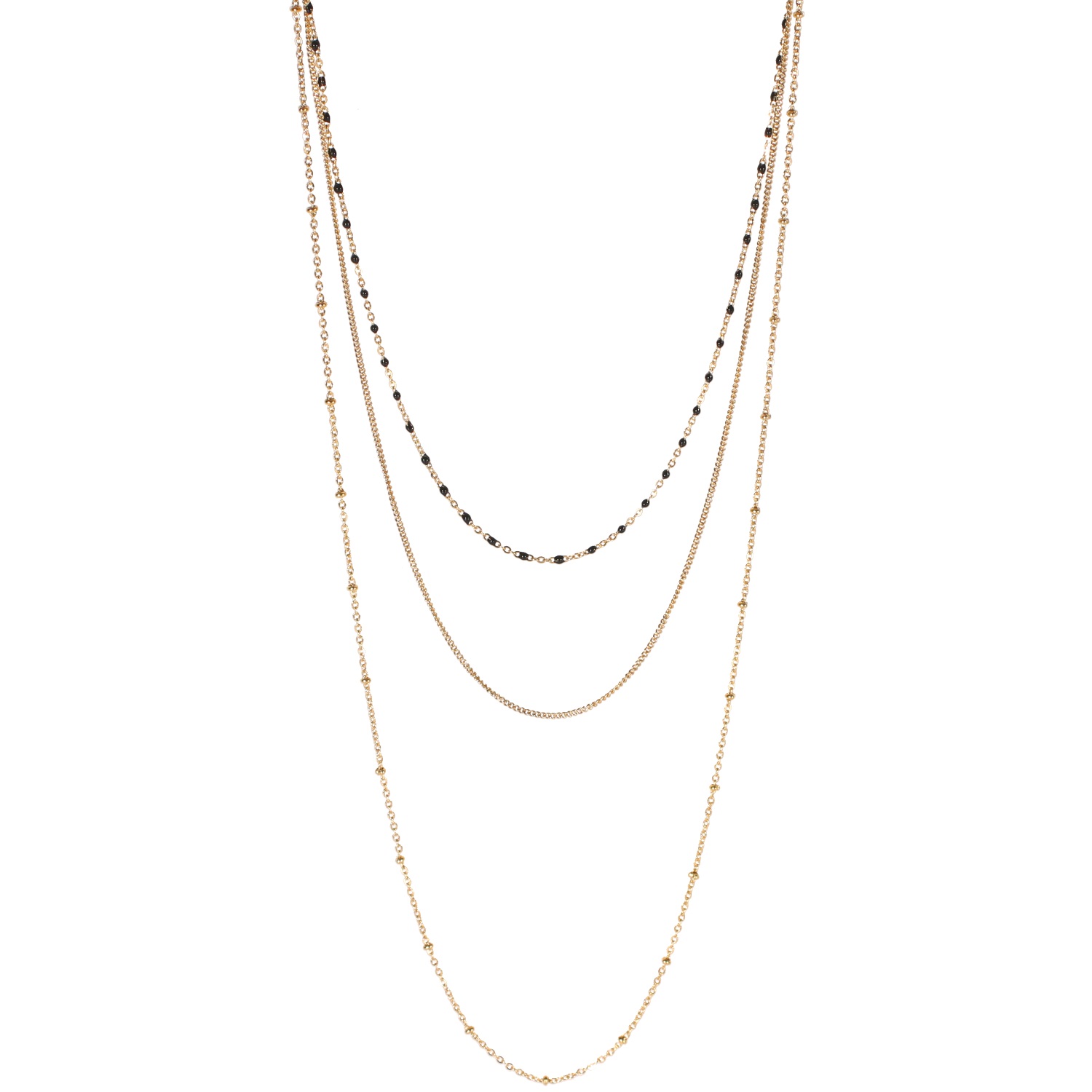 Description Collier triple rangs composé d'un collier de 38 cm de long avec perles en émail, un collier de 44 cm de long en acier doré ainsi qu'un collier de 58 cm de long en acier doré. L'ensemble peut se régler jusqu'à 7 cm de plus. Cliquez sur une matière, un thème, une couleur ou une collection pour voir tous les articles associés.