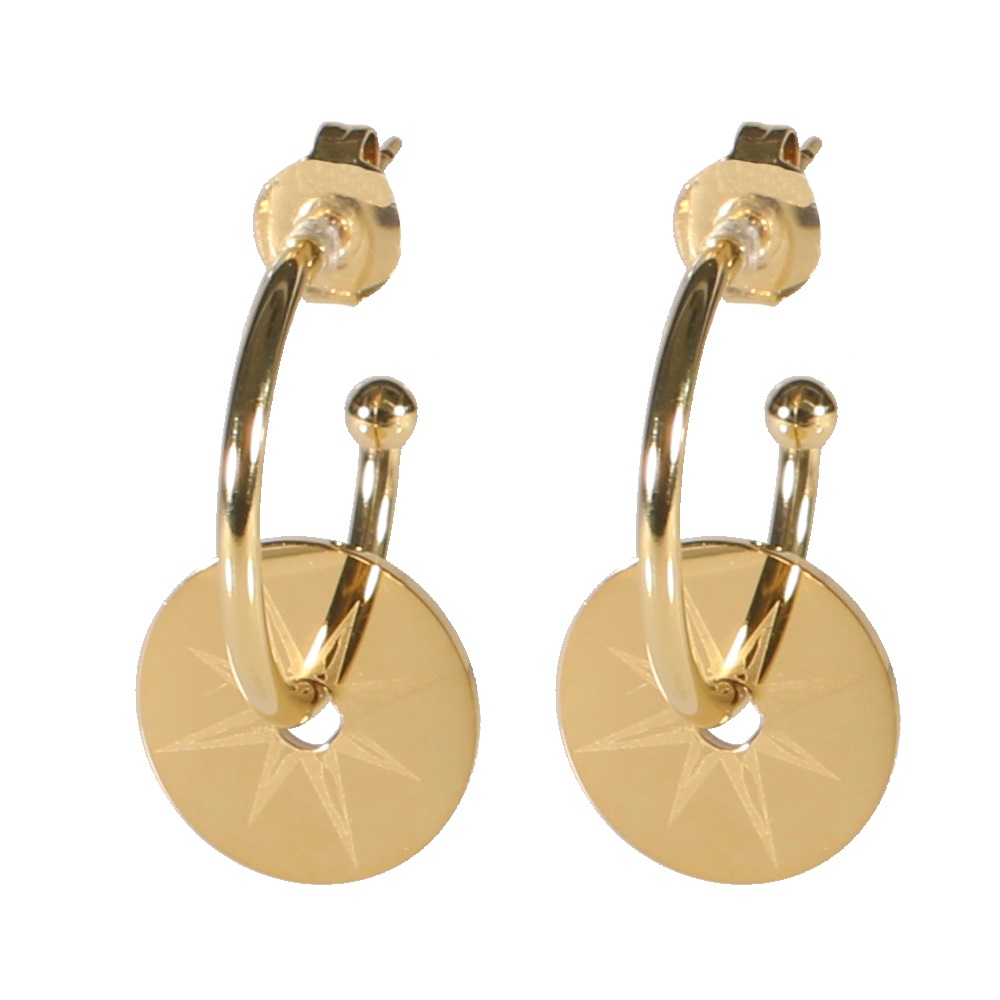 Description Boucles d'oreilles créoles avec pastilles motif étoile en acier doré. Largeur 14 mm Hauteur 25 mm Diamètre 15 mm Matière(s) Acier . L'acier utilisé dans la bijouterie existe sous plusieurs qualités. Nous utilisons principalement la qualité 316L, qualité qui est utilisée en chirurgie. Cet acier est donc inoxydable et reste très résistant. Fermoir Tiges poussettes Couleur(s) dominante(s) Doré Public Adolescent , Adulte . Genre Femme , Fille . Saison Indémodable . Thème(s) Nature . Cliquez sur une matière, un thème, une couleur ou une collection pour voir tous les articles associés.