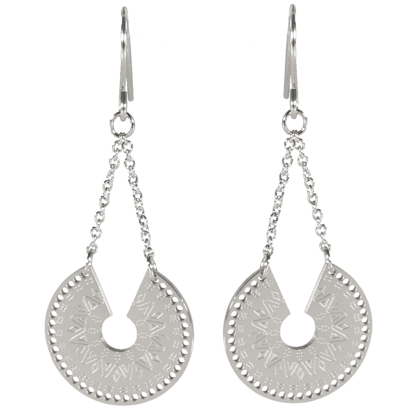 Description Boucles d'oreilles pendantes en acier argenté. Largeur 18 mm Hauteur 46 mm Matière(s) Acier . L'acier utilisé dans la bijouterie existe sous plusieurs qualités. Nous utilisons principalement la qualité 316L, qualité qui est utilisée en chirurgie. Cet acier est donc inoxydable et reste très résistant. Fermoir Crochets Couleur(s) dominante(s) Argenté Public Adolescent , Adulte . Genre Femme , Fille . Saison Indémodable . Collection Royale inca Cliquez sur une matière, un thème, une couleur ou une collection pour voir tous les articles associés.