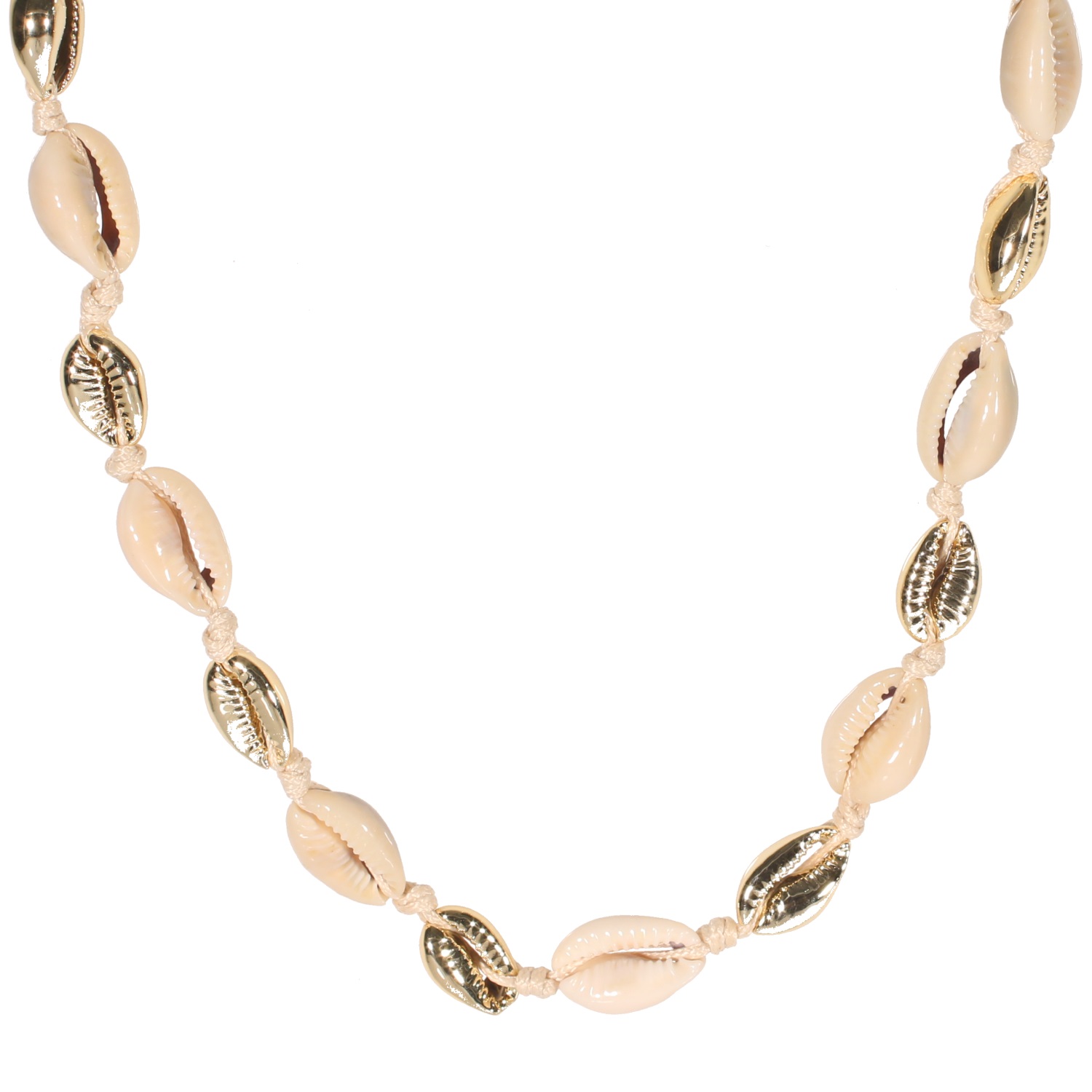Description Collier fantaisie avec cordon en coton ciré, coquillages cauris véritables et coquillages cauris en métal doré. Cliquez sur une matière, un thème, une couleur ou une collection pour voir tous les articles associés.
