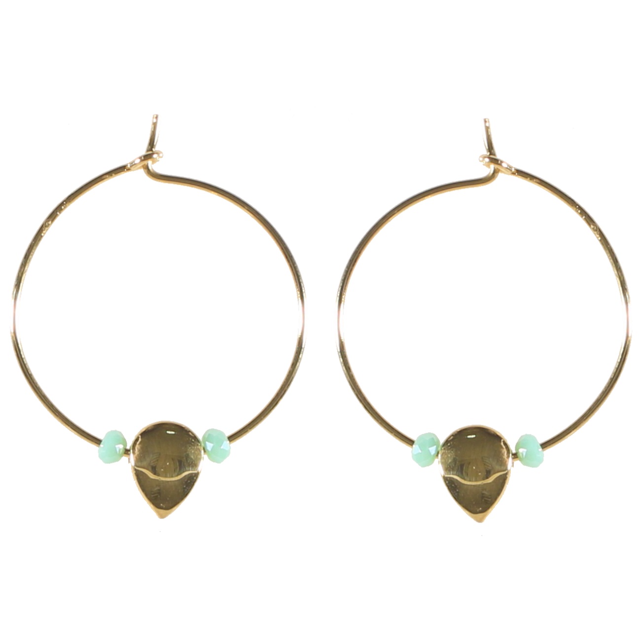 Boucles d'oreilles créoles en acier doré et perles de couleur.
