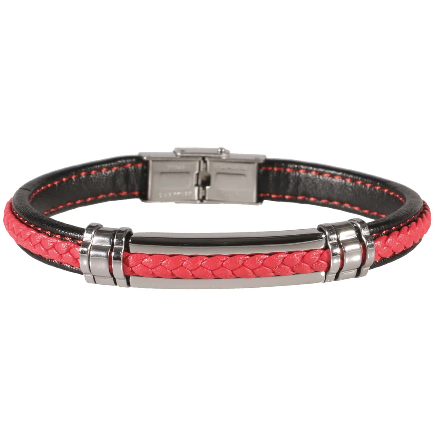 Description Bracelet pour homme en cuir de couleurs noire et rouge et acier argenté. Cliquez sur une matière, un thème, une couleur ou une collection pour voir tous les articles associés.