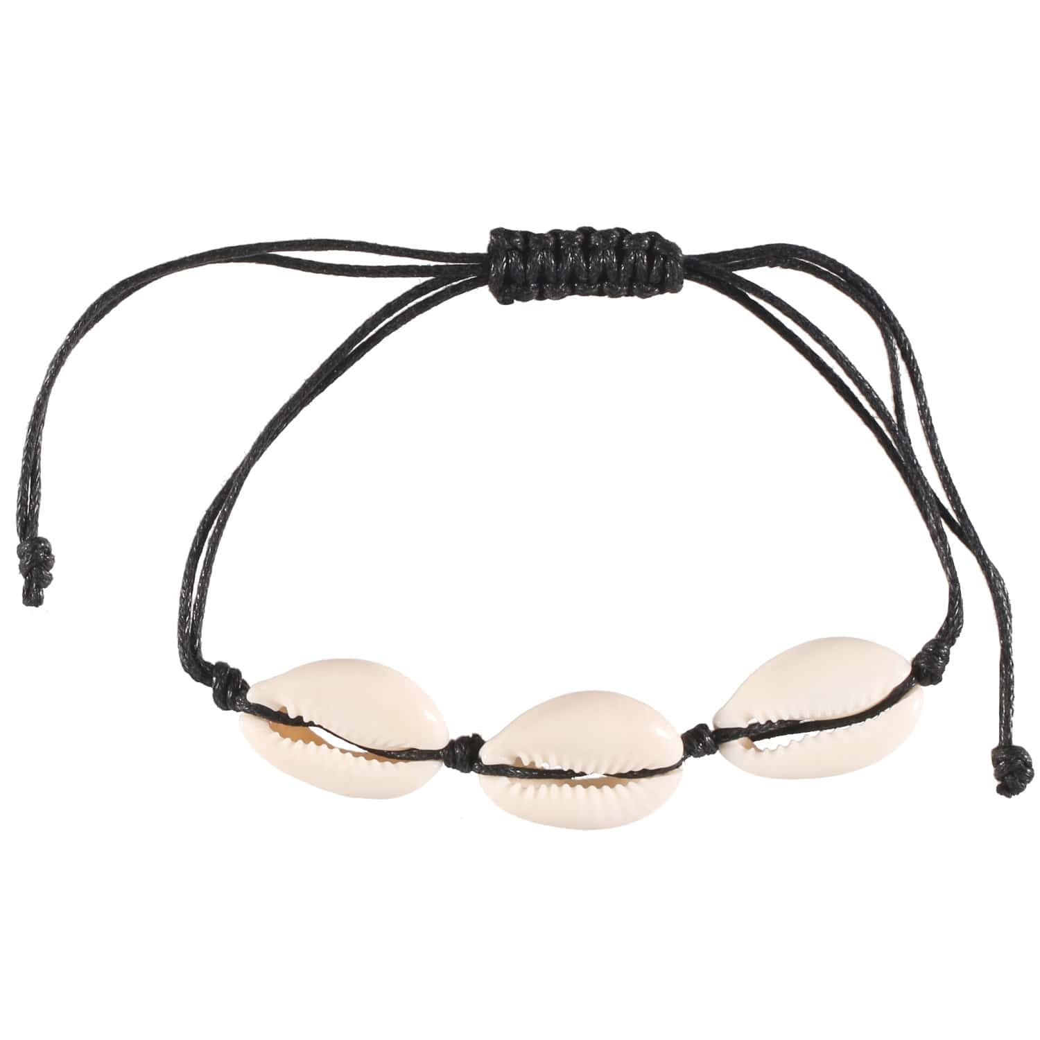 Description Bracelet fantaisie collection Seaside avec cordon en coton ciré et trois véritables coquillages cauris. Cliquez sur une matière, un thème, une couleur ou une collection pour voir tous les articles associés.