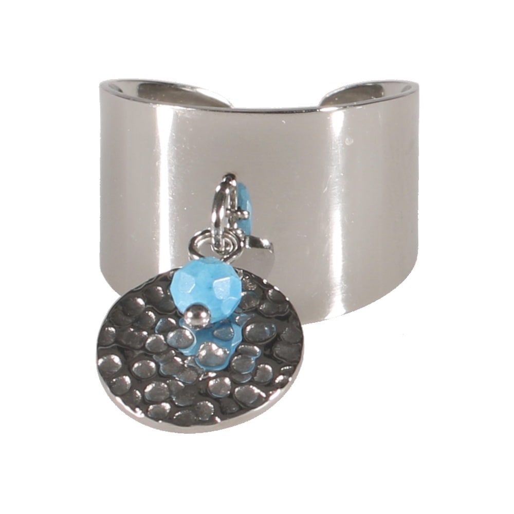 Description Bague avec pastille martelée en acier argenté et perle d'imitation turquoise. Taille ajustable. Cliquez sur une matière, un thème, une couleur ou une collection pour voir tous les articles associés.