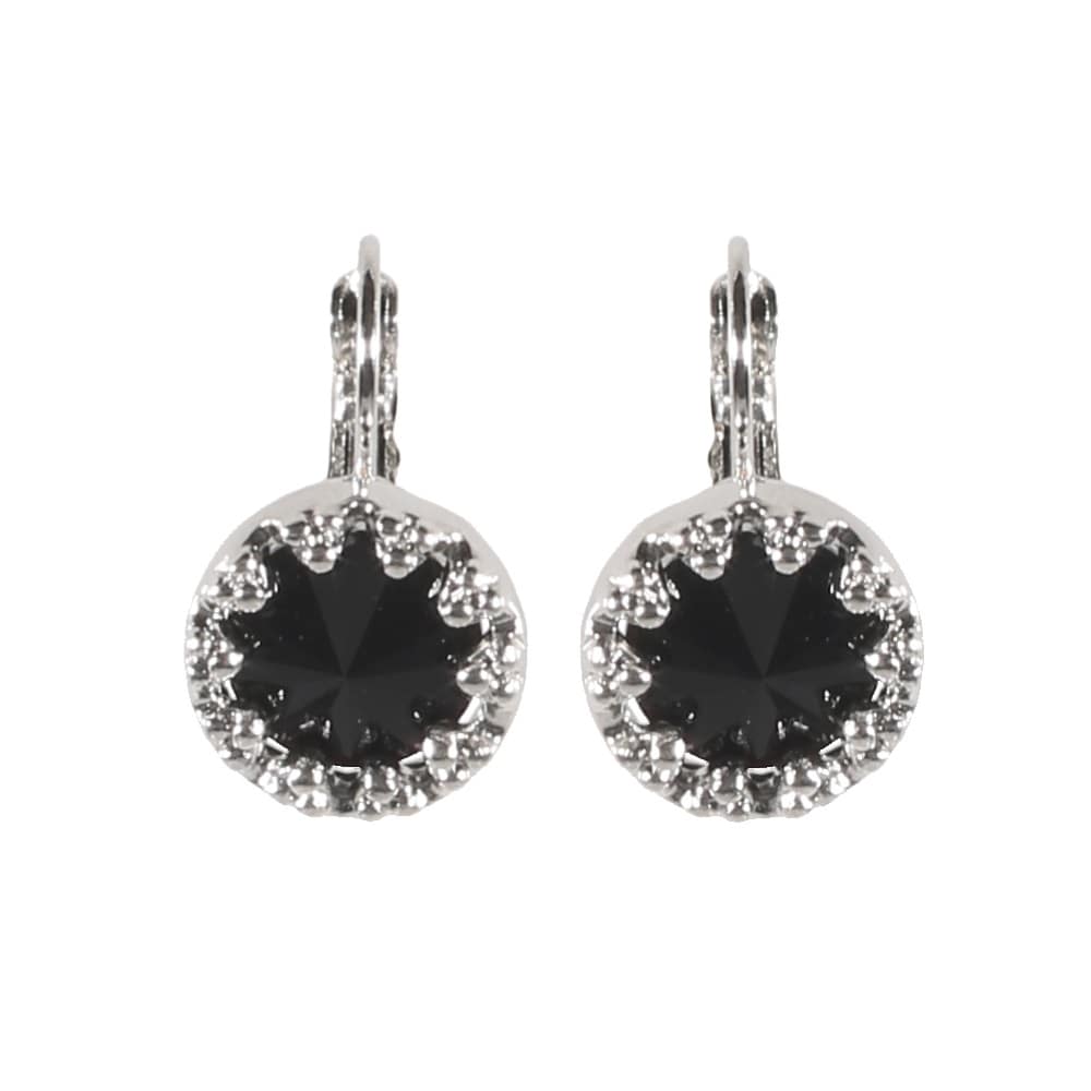Boucles d'oreilles dormeuses fantaisie en métal argenté et cristaux de couleur noire serties griffes.