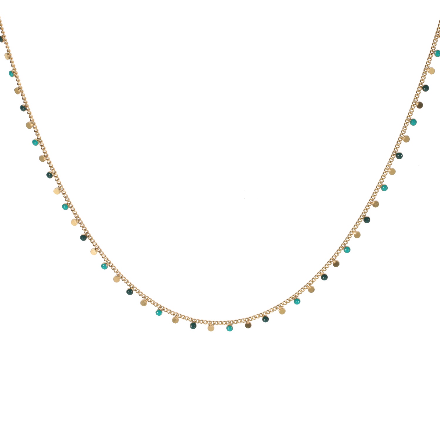 Description collier avec pampilles en acier doré et émail. Fermoir mousqueton avec 4.5 cm de rallonge. Cliquez sur une matière, un thème, une couleur ou une collection pour voir tous les articles associés.