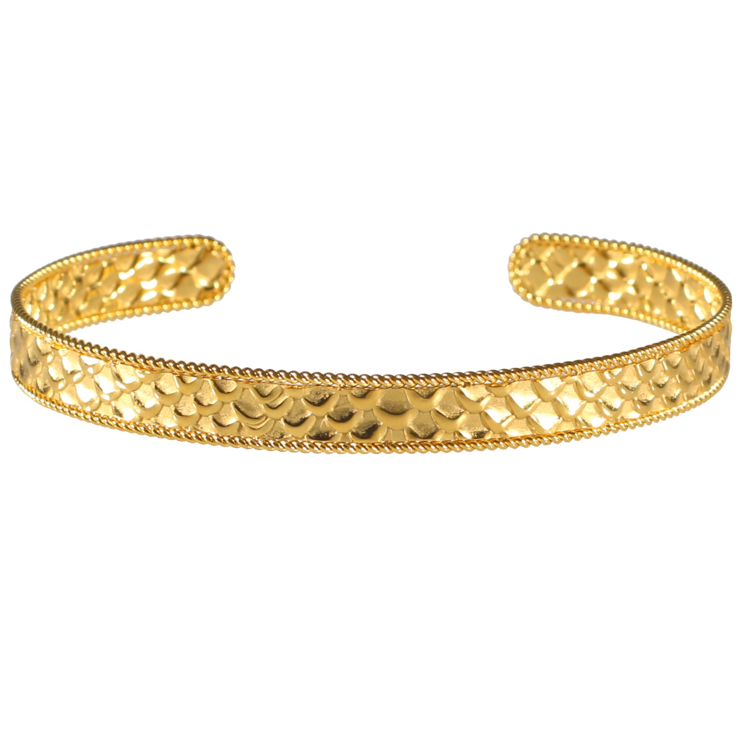 Description Bracelet jonc rigide ouvert à l'effet martelé en relief en acier 316L doré. Largeur 7 mm Diamètre 60 mm [Guide des tailles] Matière(s) Acier . L'acier utilisé dans la bijouterie existe sous plusieurs qualités. Nous utilisons principalement la qualité 316L, qualité qui est utilisée en chirurgie. Cet acier est donc inoxydable et reste très résistant. Fermoir Aucun Couleur(s) dominante(s) Doré Public Adolescent , Adulte . Genre Femme , Fille . Saison Indémodable . Collection Reflets Cliquez sur une matière, un thème, une couleur ou une collection pour voir tous les articles associés.