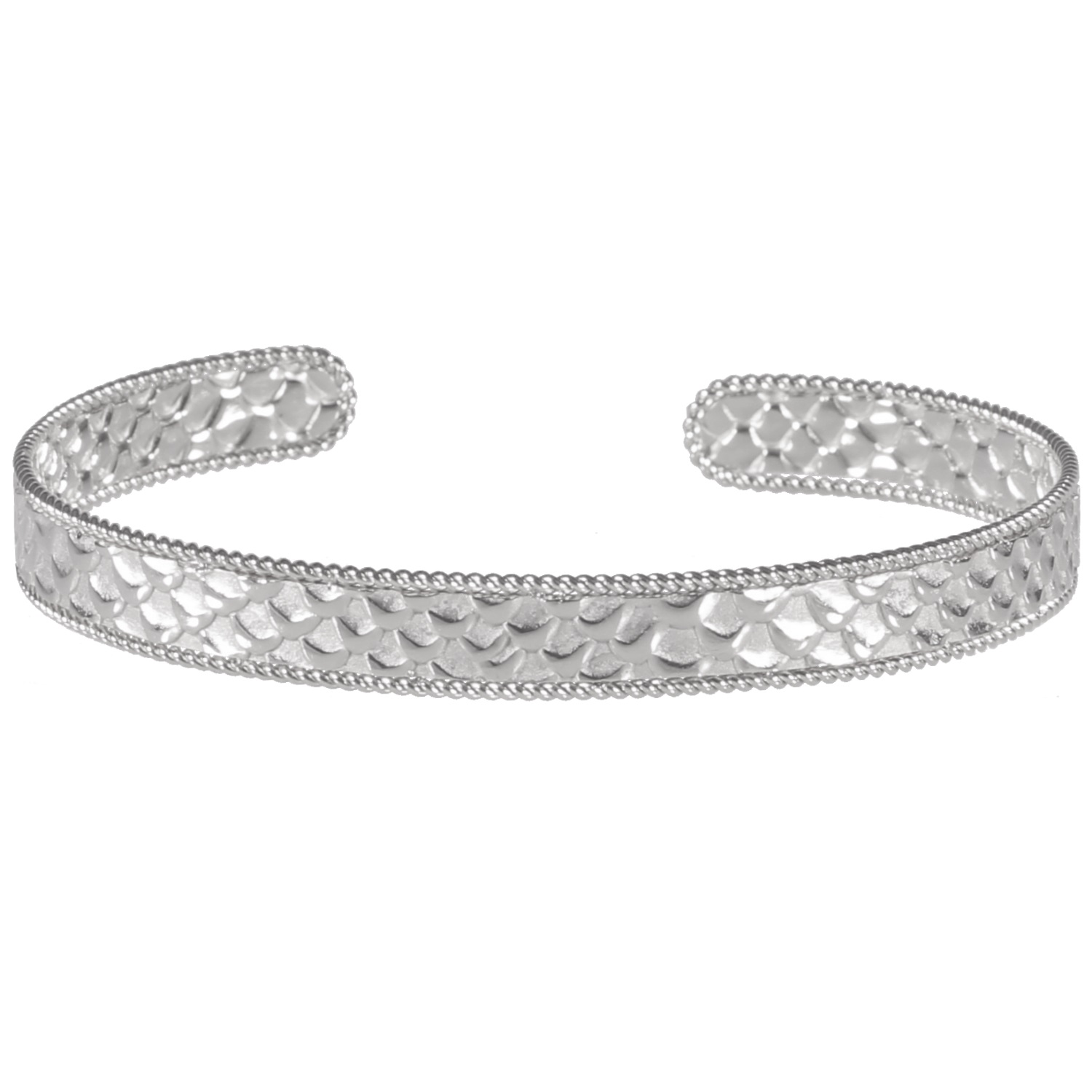 Description Bracelet jonc ouvert rigide effet martelé en acier argenté. Largeur 7 mm Diamètre 62 mm [Guide des tailles] Matière(s) Acier . L'acier utilisé dans la bijouterie existe sous plusieurs qualités. Nous utilisons principalement la qualité 316L, qualité qui est utilisée en chirurgie. Cet acier est donc inoxydable et reste très résistant. Fermoir Aucun Couleur(s) dominante(s) Argenté Public Adolescent , Adulte . Genre Femme , Fille . Saison Indémodable . Collection Reflets Cliquez sur une matière, un thème, une couleur ou une collection pour voir tous les articles associés.
