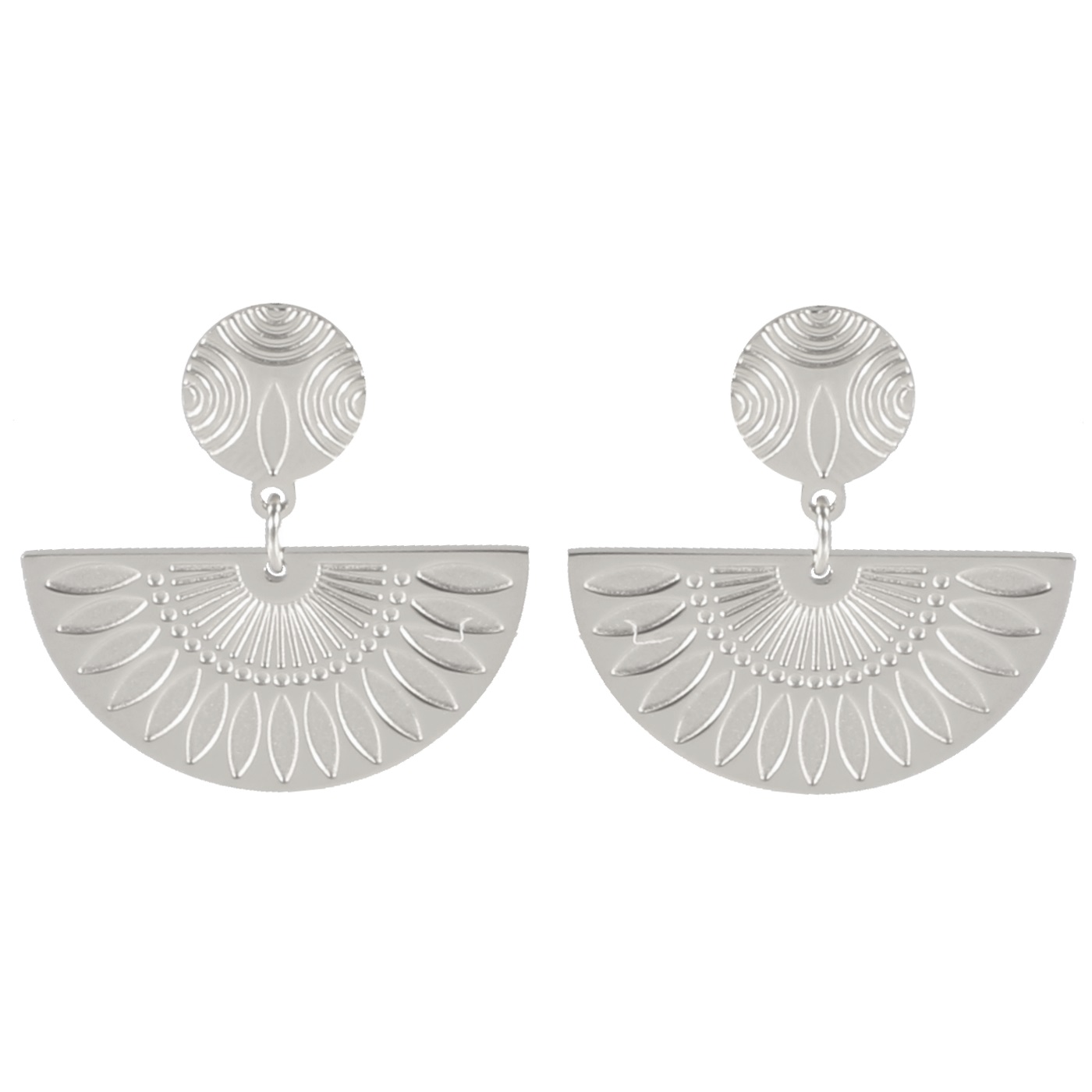 Description Boucles d'oreilles pendantes composées de puces rondes et de demi pastilles rondes aux motifs gravés en acier argenté. Largeur 22 mm Hauteur 22 mm Matière(s) Acier . L'acier utilisé dans la bijouterie existe sous plusieurs qualités. Nous utilisons principalement la qualité 316L, qualité qui est utilisée en chirurgie. Cet acier est donc inoxydable et reste très résistant. Fermoir Tiges poussettes Couleur(s) dominante(s) Argenté Public Adolescent , Adulte . Genre Femme , Fille . Saison Indémodable . Collection Royale inca Cliquez sur une matière, un thème, une couleur ou une collection pour voir tous les articles associés.