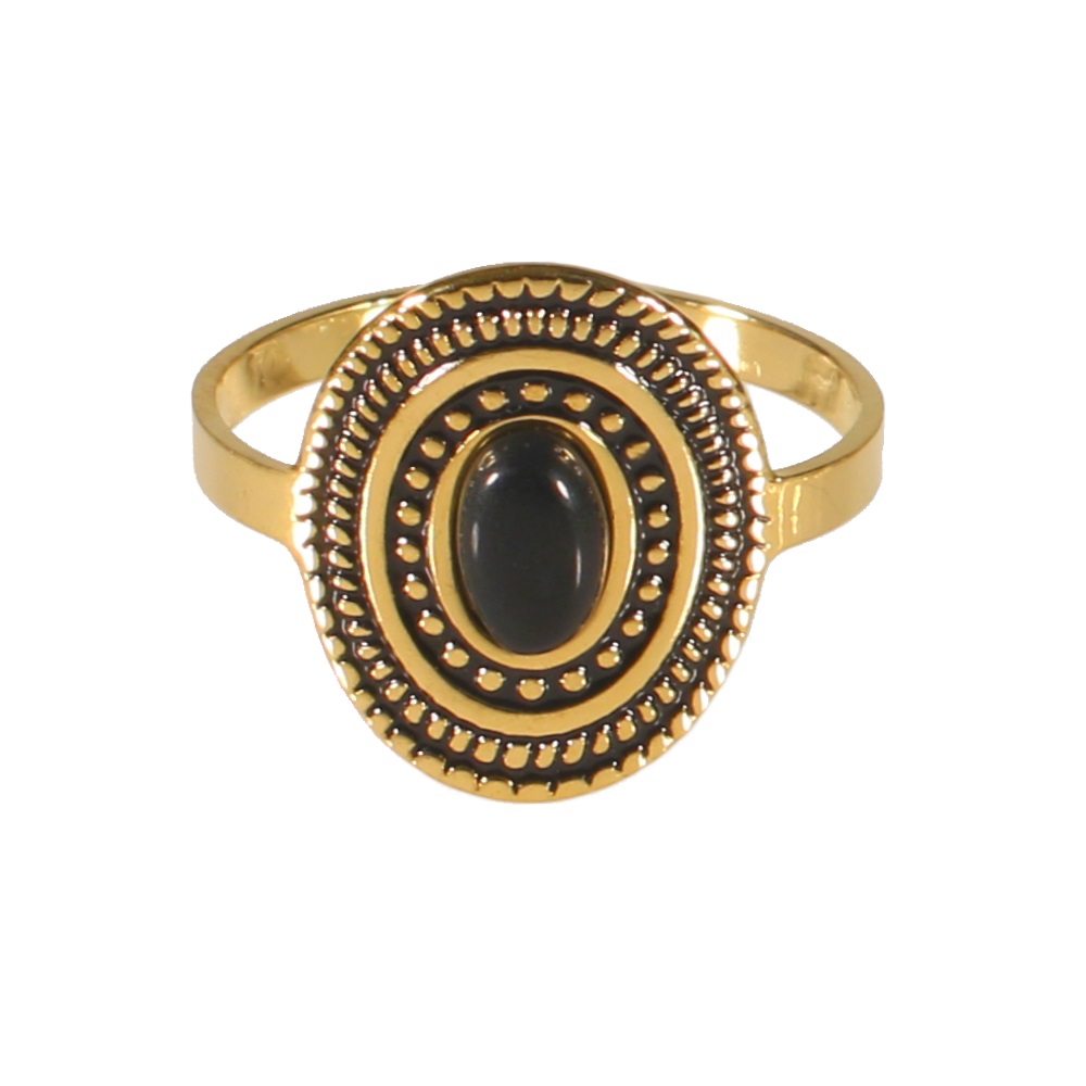 Description Bague de forme ovale aux motifs en relief en acier doré surmontée d'une pierre de couleur noire serties clos. Taille ajustable. Largeur 15 mm Matière(s) Acier , Rocaille . L'acier utilisé dans la bijouterie existe sous plusieurs qualités. Nous utilisons principalement la qualité 316L, qualité qui est utilisée en chirurgie. Cet acier est donc inoxydable et reste très résistant. Couleur(s) dominante(s) Doré , Noir Public Adolescent , Adulte . Genre Femme , Fille . Saison Indémodable . Cliquez sur une matière, un thème, une couleur ou une collection pour voir tous les articles associés.