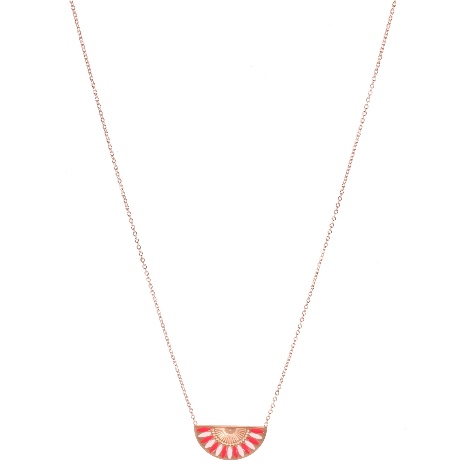 Description Collier composé d'une chaîne et d'un pendentif demi rond avec motifs en acier rosé et émail de couleur rouge et blanche. Fermoir mousqueton avec une rallonge de 5 cm. Longueur 41+5 cm [Guide des tailles] Matière(s) Acier , Email . L'acier utilisé dans la bijouterie existe sous plusieurs qualités. Nous utilisons principalement la qualité 316L, qualité qui est utilisée en chirurgie. Cet acier est donc inoxydable et reste très résistant. Fermoir Mousqueton À noter Pendentif 22x11 mm Couleur(s) dominante(s) Blanc , Rose , Rouge Public Adolescent , Adulte . Genre Femme , Fille . Saison Indémodable . Cliquez sur une matière, un thème, une couleur ou une collection pour voir tous les articles associés.