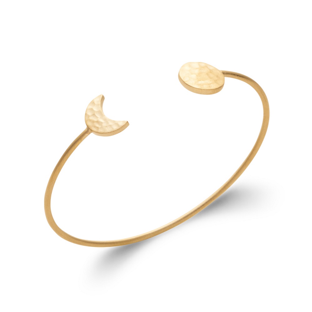 Description Bracelet jonc ouvert fil rond finissant d'un côté par un croissant de lune martelé et de l'autre une pastille ronde martelée en plaqué or jaune 18 carats. Largeur 10 mm Matière(s) Plaqué or . Nos bijoux en plaqué or sont faits sur une base de laiton et recouverts d'or 18 carats à 3 microns sans dispersion. Cela signifie que nous garantissons 3 microns d'or sur n'importe quelle partie du bijou. Sur la plupart de nos bijoux empierrés, nous montons à 5 microns d'or 18 carats. Pour finir, nous faisons également une finition avec de l'or 24 carats afin de donner un plus bel éclat à nos bijoux. Fermoir Aucun Couleur(s) dominante(s) Doré Public Adolescent , Adulte . Genre Femme , Fille . Saison Indémodable . Thème(s) Nature . Collection Astre sublime , Reflets Cliquez sur une matière, un thème, une couleur ou une collection pour voir tous les articles associés.