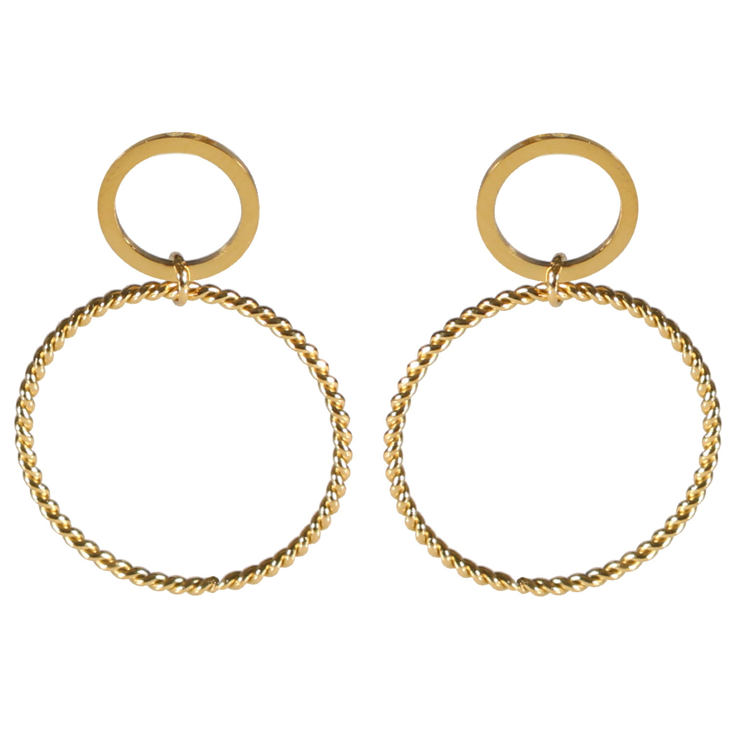 Description Boucles d'oreilles pendantes composées de deux cercles dont un au contour tressé en acier doré. Largeur 25 mm Hauteur 37 mm Matière(s) Acier . L'acier utilisé dans la bijouterie existe sous plusieurs qualités. Nous utilisons principalement la qualité 316L, qualité qui est utilisée en chirurgie. Cet acier est donc inoxydable et reste très résistant. Fermoir Tiges poussettes Couleur(s) dominante(s) Doré Public Adolescent , Adulte . Genre Femme , Fille . Saison Indémodable . Cliquez sur une matière, un thème, une couleur ou une collection pour voir tous les articles associés.