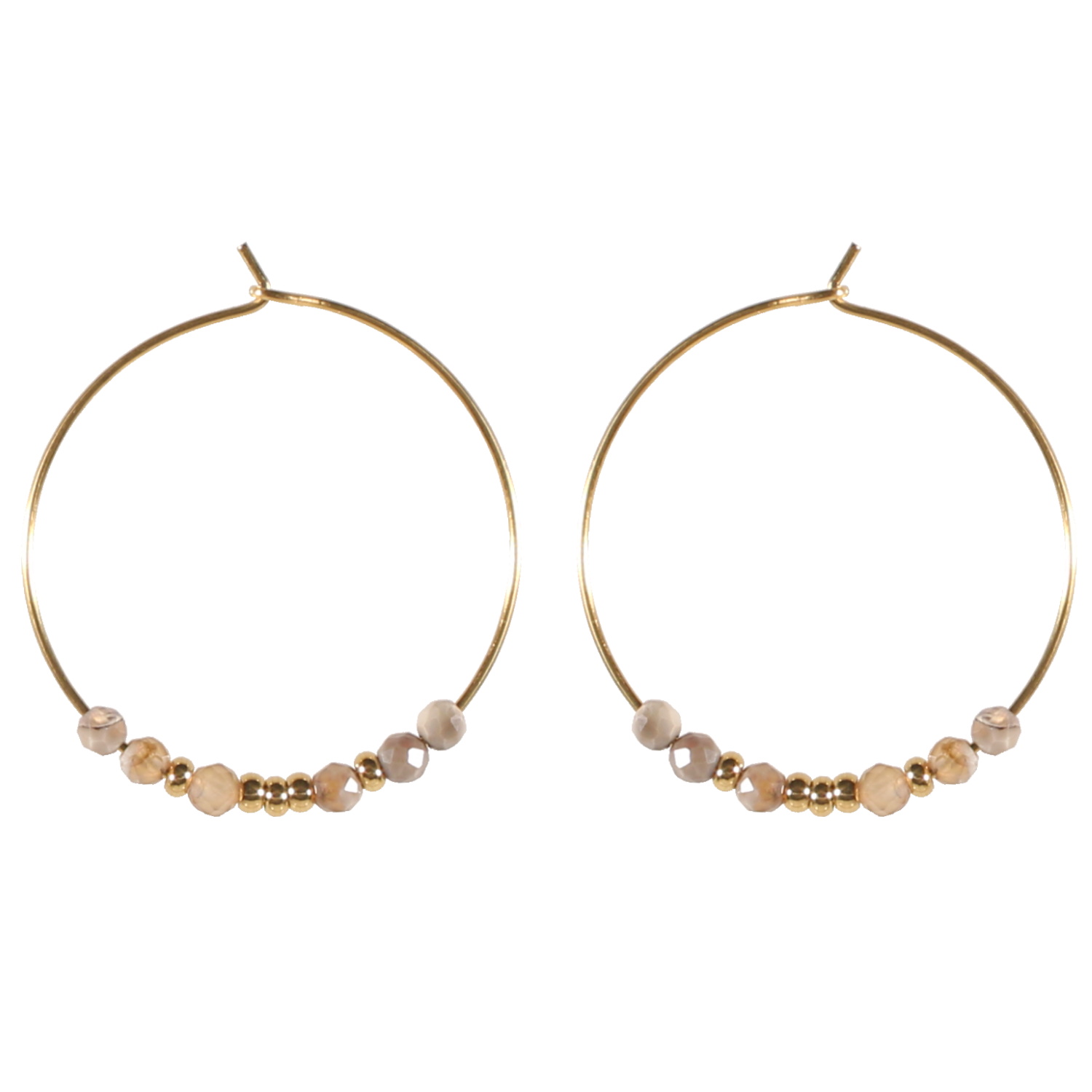 Boucles d'oreilles créoles en acier doré composées de perles en acier doré et en pierre naturelle.