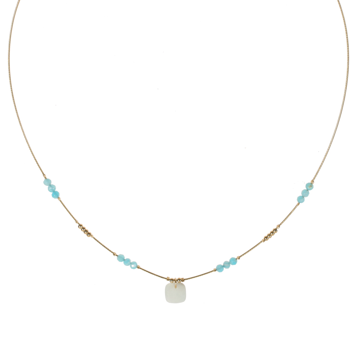 Description Collier semi rigide composé d'un fil d'acier doré avec perles en acier doré, perles de couleur et un pendentif en pierre de couleur verte de forme carré. Fermoir mousqueton avec 5 cm de rallonge. Longueur 40+5 cm [Guide des tailles] Largeur 10 mm Matière(s) Acier , Rocaille . L'acier utilisé dans la bijouterie existe sous plusieurs qualités. Nous utilisons principalement la qualité 316L, qualité qui est utilisée en chirurgie. Cet acier est donc inoxydable et reste très résistant. Fermoir Mousqueton Couleur(s) dominante(s) Doré , Vert Public Adolescent , Adulte . Genre Femme , Fille . Saison Indémodable . Cliquez sur une matière, un thème, une couleur ou une collection pour voir tous les articles associés.