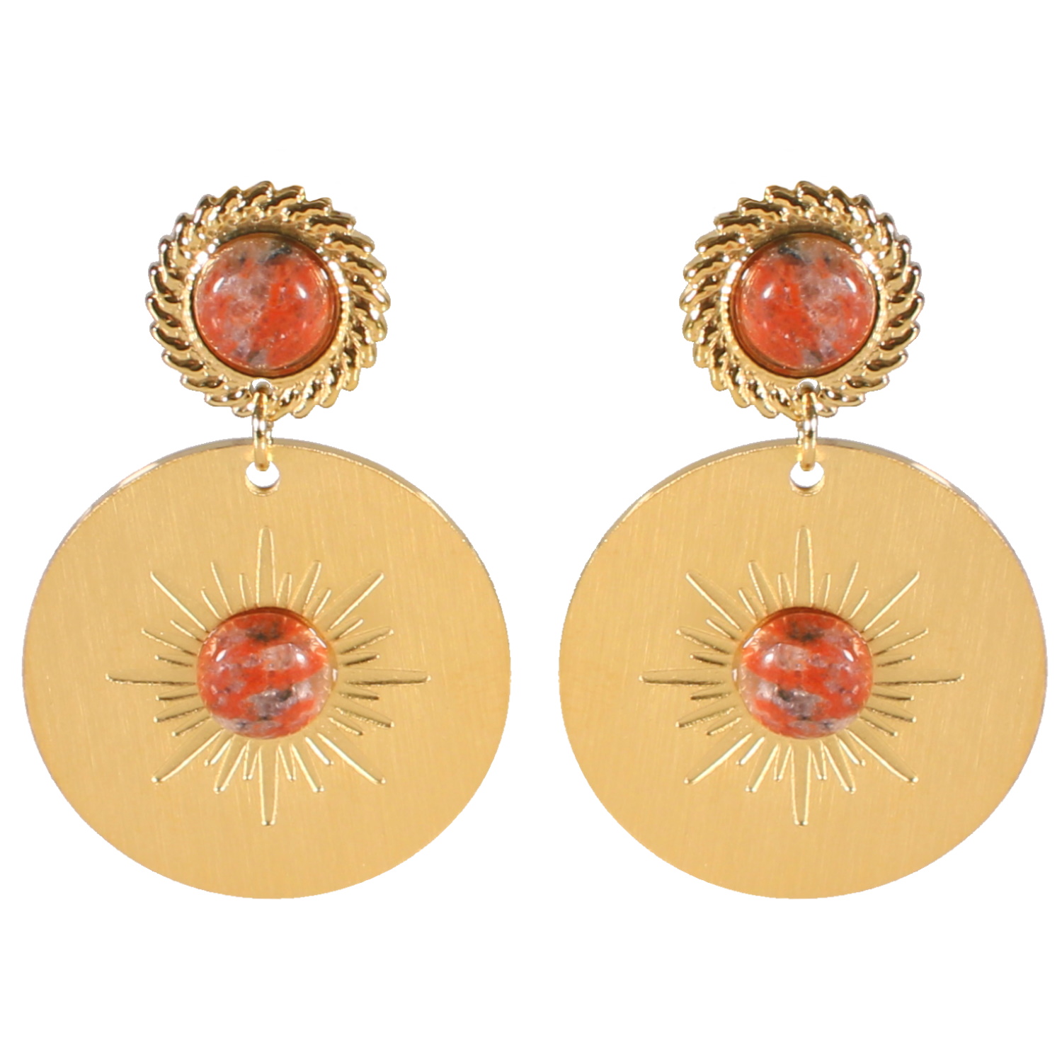 Description Boucles d'oreilles pendantes composées d'une pastille ronde en acier 316L doré surmontée d'une pierre de couleur rouge et d'une pastille ronde avec motif d'étoile en acier 316L doré surmontée d'une pierre de couleur rouge. Largeur 22 mm Hauteur 34 mm Matière(s) Acier , Rocaille . L'acier utilisé dans la bijouterie existe sous plusieurs qualités. Nous utilisons principalement la qualité 316L, qualité qui est utilisée en chirurgie. Cet acier est donc inoxydable et reste très résistant. Fermoir Tiges poussettes Couleur(s) dominante(s) Doré , Rouge Public Adolescent , Adulte . Genre Femme , Fille . Saison Indémodable . Cliquez sur une matière, un thème, une couleur ou une collection pour voir tous les articles associés.