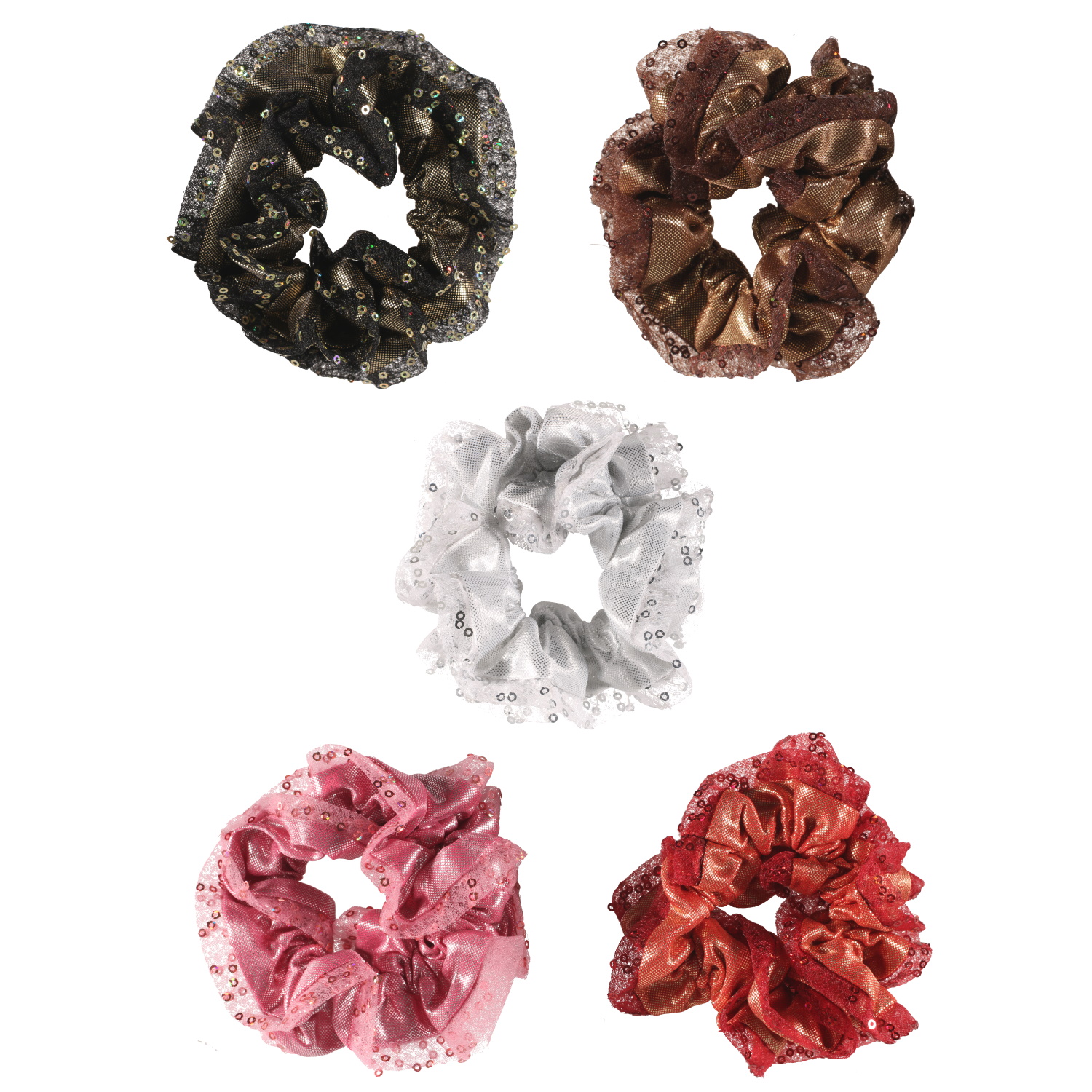 Chouchou élastique pour cheveux en textile de couleur avec rondelles de plastique brillant.