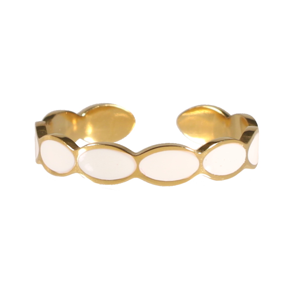 Description Bague en acier doré pavée d'émail de couleur blanche. Taille ajustable. Largeur 4 mm Matière(s) Acier , Email . L'acier utilisé dans la bijouterie existe sous plusieurs qualités. Nous utilisons principalement la qualité 316L, qualité qui est utilisée en chirurgie. Cet acier est donc inoxydable et reste très résistant. Fermoir Aucun Couleur(s) dominante(s) Blanc , Doré Public Adolescent , Adulte . Genre Femme , Fille . Saison Automne , Hiver . Cliquez sur une matière, un thème, une couleur ou une collection pour voir tous les articles associés.