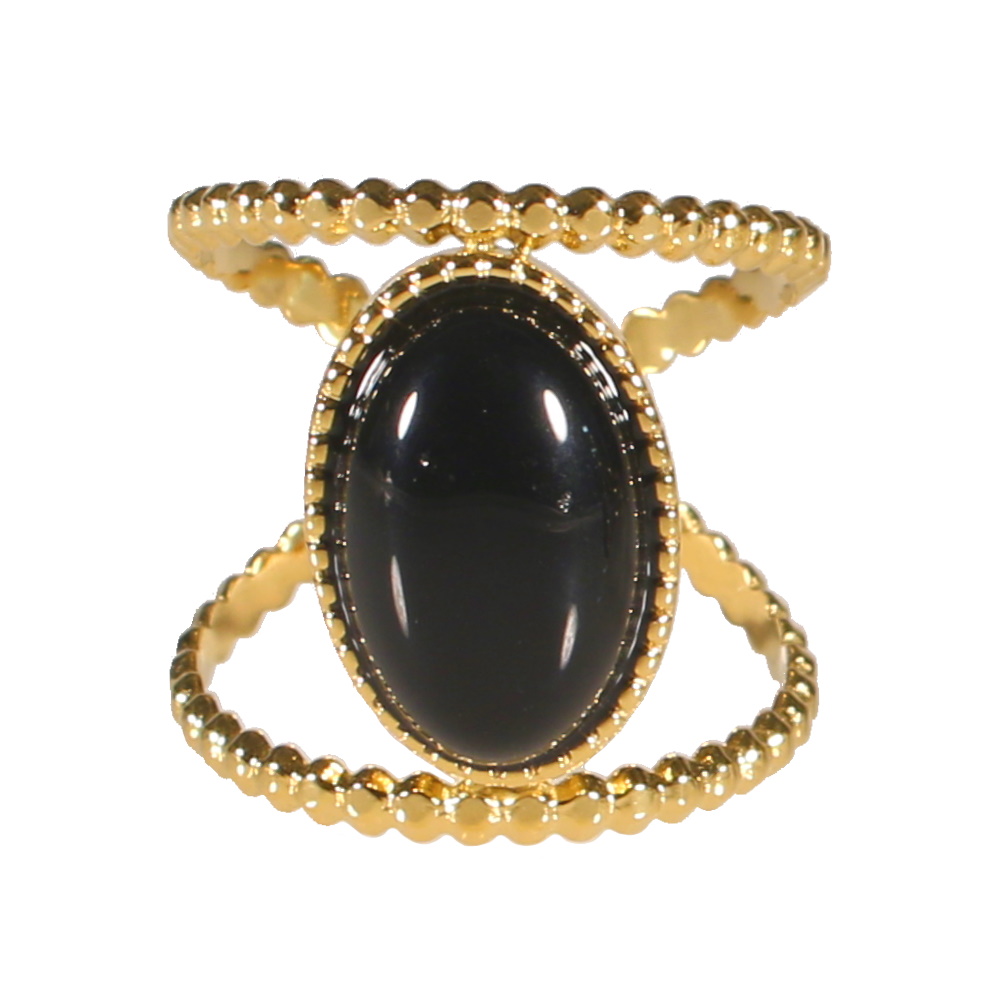 Bague en acier doré surmontée d'une véritable pierre d'onyx sertie clos.