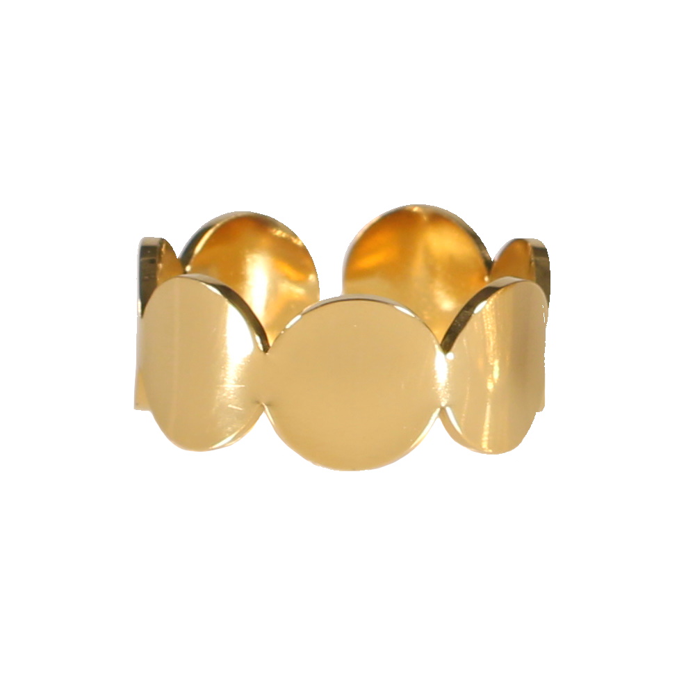 Description Bague au motifs de pastilles rondes lisses en acier doré. Taille ajustable. Largeur 8 mm Matière(s) Acier . L'acier utilisé dans la bijouterie existe sous plusieurs qualités. Nous utilisons principalement la qualité 316L, qualité qui est utilisée en chirurgie. Cet acier est donc inoxydable et reste très résistant. Fermoir Aucun Couleur(s) dominante(s) Doré Public Adolescent , Adulte . Genre Femme , Fille . Saison Indémodable . Cliquez sur une matière, un thème, une couleur ou une collection pour voir tous les articles associés.
