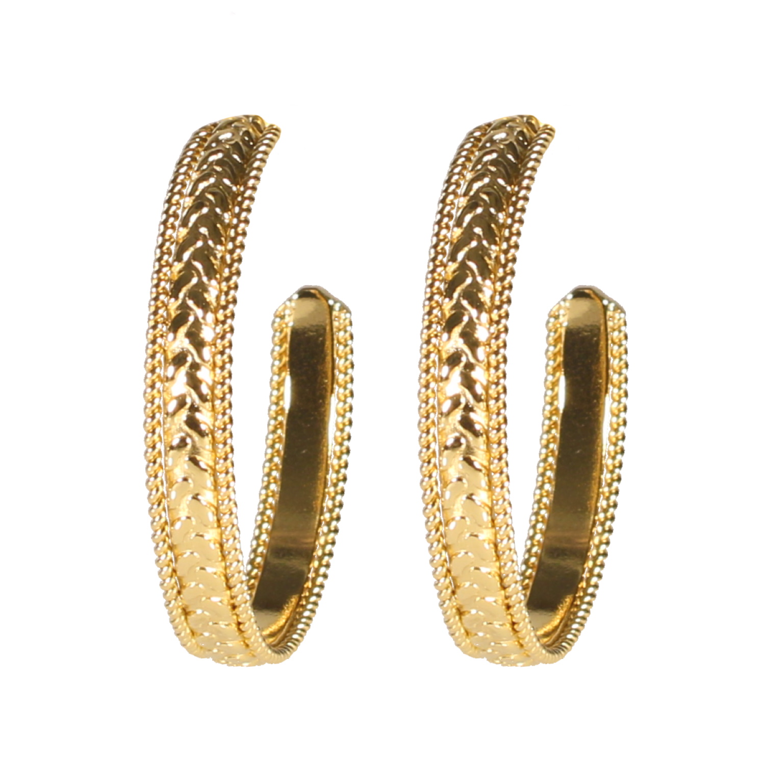 Description Boucles d'oreilles créoles avec motifs en relief en acier doré. Largeur 5 mm Diamètre 30 mm [Guide des tailles] Matière(s) Acier . L'acier utilisé dans la bijouterie existe sous plusieurs qualités. Nous utilisons principalement la qualité 316L, qualité qui est utilisée en chirurgie. Cet acier est donc inoxydable et reste très résistant. Fermoir Tiges poussettes Couleur(s) dominante(s) Doré Public Adolescent , Adulte . Genre Femme , Fille . Saison Indémodable . Cliquez sur une matière, un thème, une couleur ou une collection pour voir tous les articles associés.