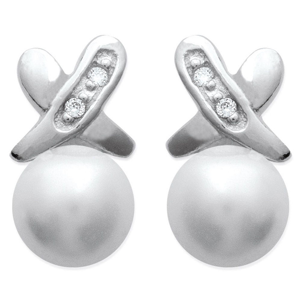 Boucles d'oreilles en argent 925/000 rhodié et perle d'imitation.