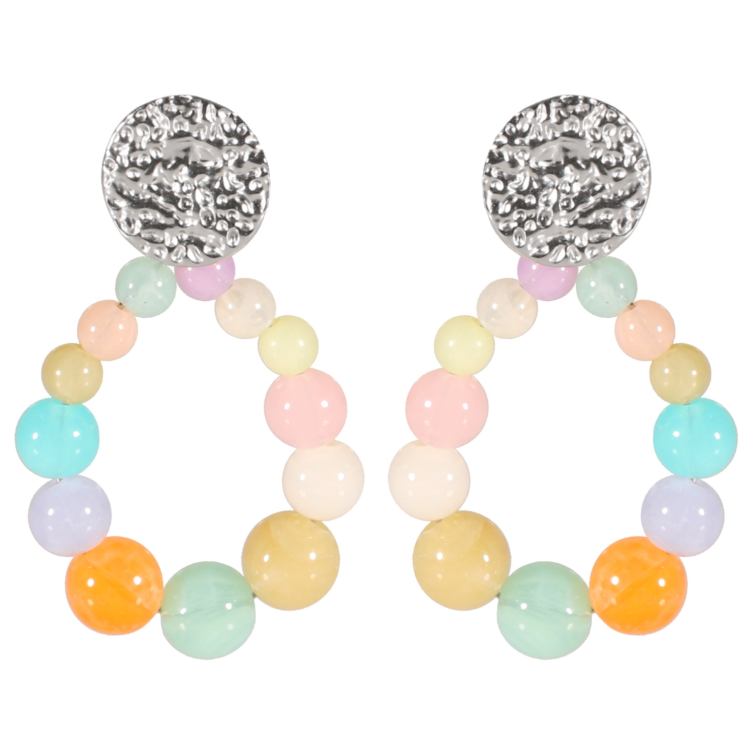 Description Boucles d'oreilles pendantes composées d'une pastille ronde martelée en acier argenté et un cercle ovale de perles multicolores. Largeur 35 mm Hauteur 57 mm Matière(s) Acier , Rocaille . L'acier utilisé dans la bijouterie existe sous plusieurs qualités. Nous utilisons principalement la qualité 316L, qualité qui est utilisée en chirurgie. Cet acier est donc inoxydable et reste très résistant. Fermoir Tiges poussettes Couleur(s) dominante(s) Argenté , Multicolore Public Adolescent , Adulte . Genre Femme , Fille . Saison Eté . Cliquez sur une matière, un thème, une couleur ou une collection pour voir tous les articles associés.